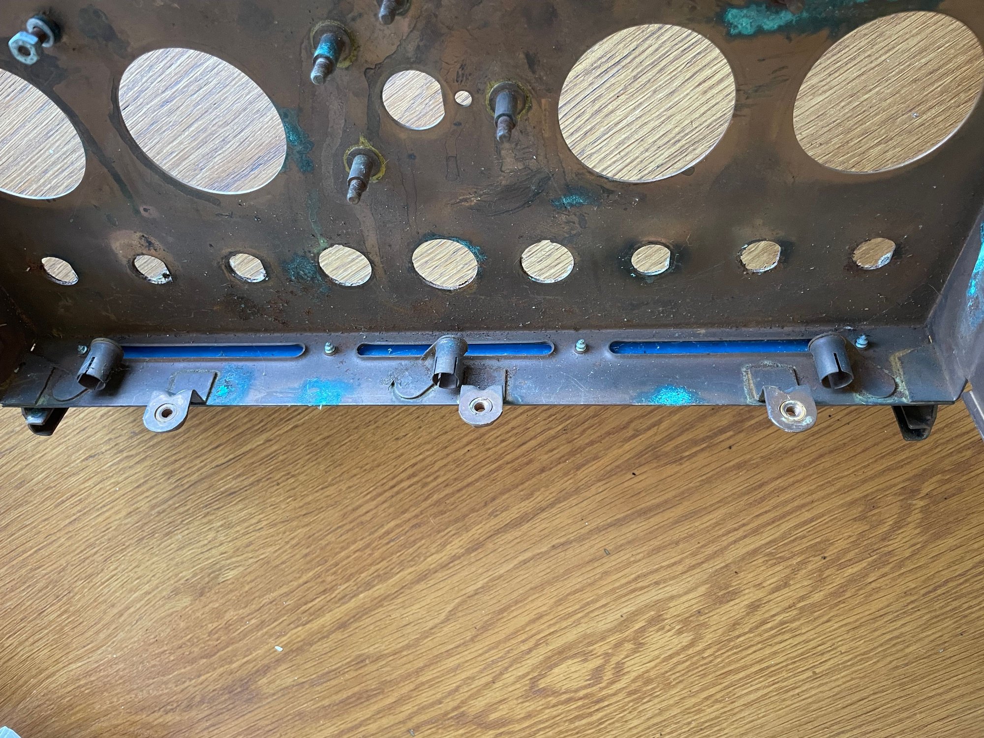 No way you can get a photo of these lights as they are tucked right down the back of the instrument panel underneath the wiring. Below are two photos of my dash being taken apart during my restoration and you cannot see the lights or recognise where they would even be.