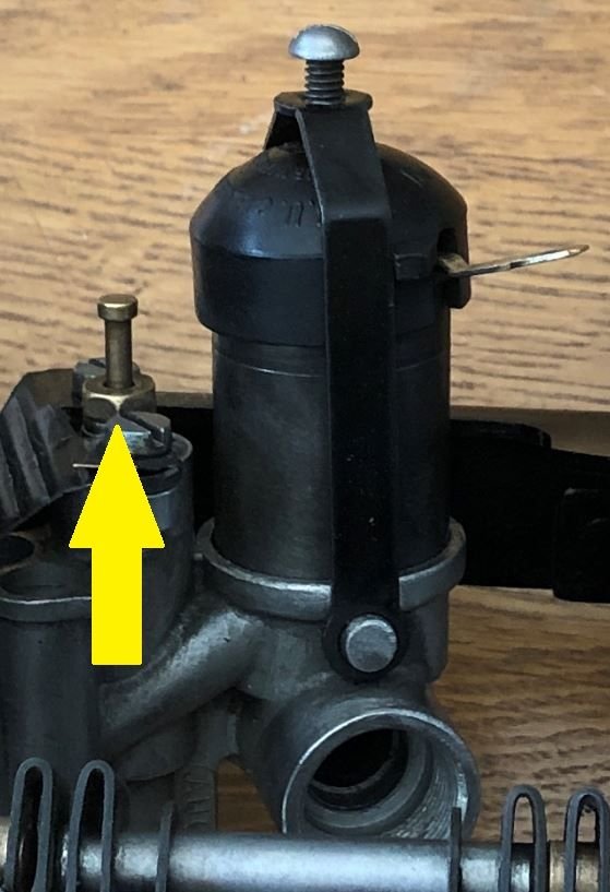 There is an adjusting nut in the middle where the air is drawn into the choke.