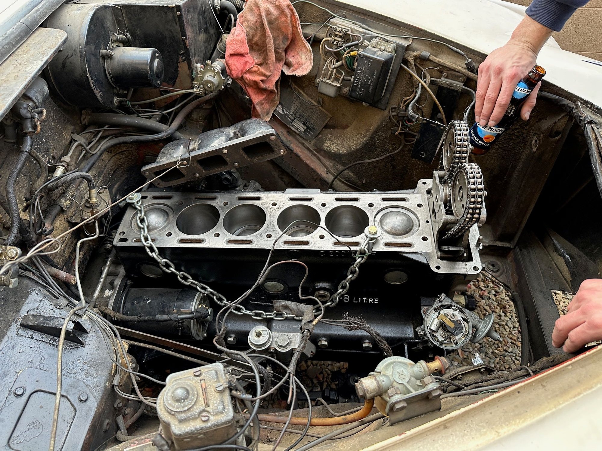 PO’s grandfather was a jag dealership and had installed bigger pistons and decked the block for more power. The block and gearbox look like they just came out of the showroom.
