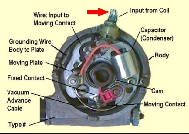 If you watch the whole video, he wraps the hot braded wire around the condenser wire, I don't agree with that, it has to move freely when the vacuum advance moves the base plate.
