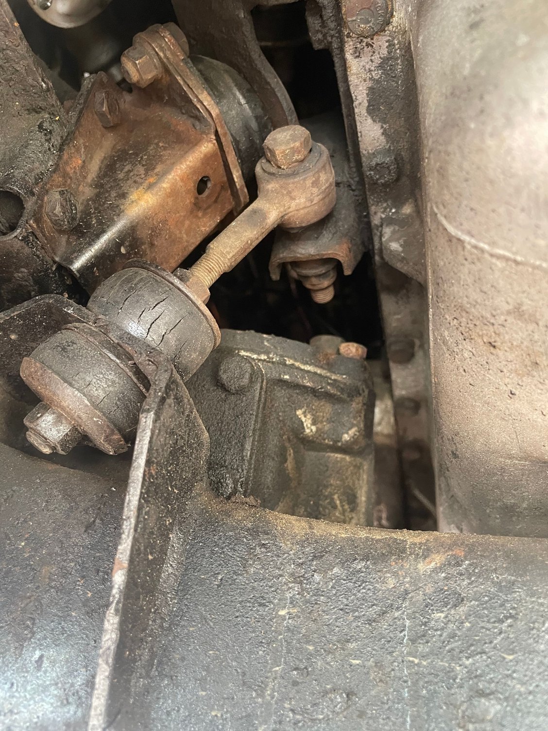 I don't want to correct Glyn as I do not have the stabilisers on my 1968 S type but looking at the photos you have shown I would have thought that you could remove the stabilisers without lifting the engine to far if at all. Once the upper rose joint bolt has been removed there should be room to unscrew the lower bolt and lift the stabiliser out. It might be a bit fiddly but looks doable. If you were going to replace the engine mounts at the same time again you do not need to lift the engine very high. I have done my engine mounts with the engine lifted no more than a couple of inches, achieved by lifting the car on a jack then placing a piece of wood under the sump with an axle stand for support. Lower the car gently onto the axle stand which with the engine mounts already loosened will lift the engine sufficiently to slide the mounts out and slide the new ones in. Do protect the underside of the sump with a piece of wood though as the alloy is not strong enough to support the weight of the engine alone.