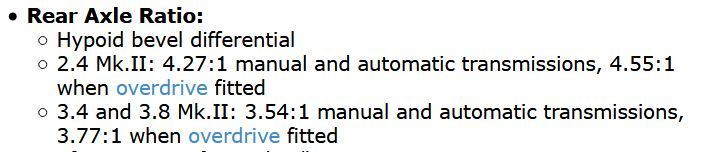 I think there's a mistake in the equation I gave. I'd assumed a ratio of 2:1 on the drive from the gearbox/overdrive. It's more likely to be 2.5:1 so that