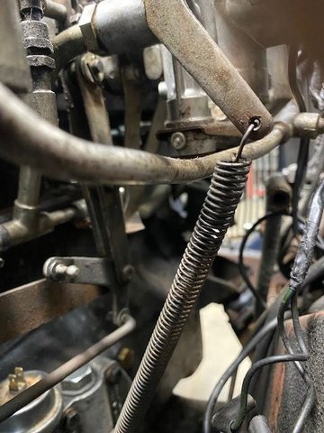 I've gotten my engine back in the 340 and am in the process of hooking things together. A problem I've encountered is the throttle linkage. I removed the linkage from the original engine and let it hang when the engine was pulled. I now cannot figure why it won't fit properly. The engine I've installed is from a 58 MK1. I used the carbs and so one from it. I compared the carb setup to the ones that came off the car and look nearly identical. My photo isn't the best but it seems when I attach the wide stationary bar to the swinging hanger the bell crank (or whatever it's called) will not reach it's attachment point. Cn anyone help?