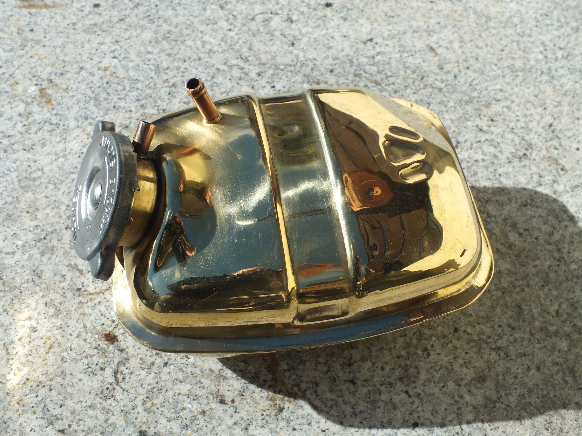 There are a couple you can get hold of. One is about a litre capacity the second is about a litre and a half so a bit thicker in shape. The one I have is an expansion tank so it only has one inlet at the top and this pipe runs to the bottom of the tank so it can suck the water back up into the radiator when it cools. There is a third tank that has an inlet at the top but a short pipe inside. At the bottom it has a second larger outlet. This type of tank is used as a header tank and no good as an expansion tank. The photo you showed is of the third type ie header tank, as it has an outlet at the bottom.