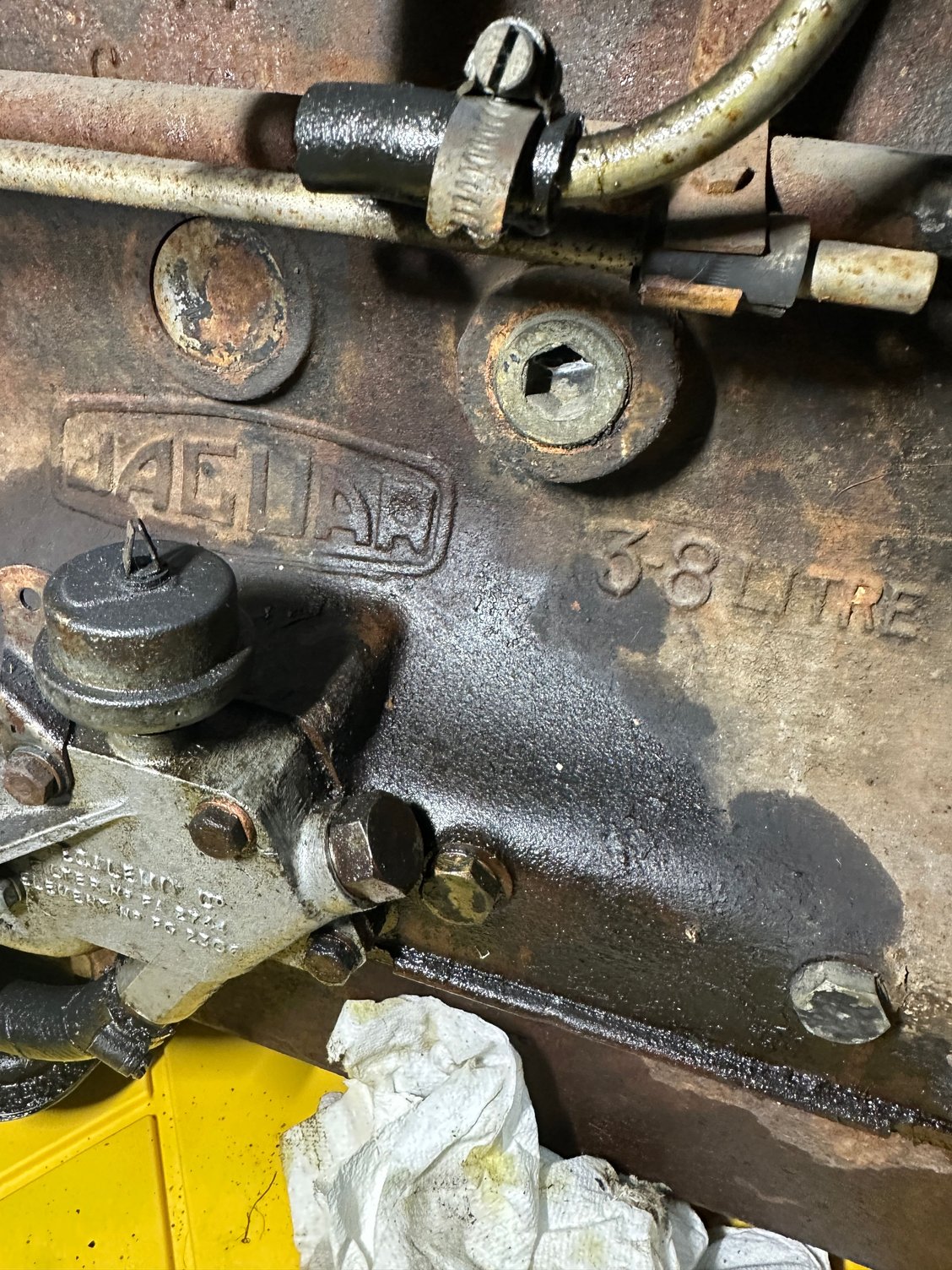 The engine number is as you have it in the photo stamped into the casing above the oil filter housing. Some engines also repeated this number on the head. It could be found in what is commonly known as the valley which is the area immediately in front of the last spark plug hole. If you look over the top of the coil between the two alloy cam covers the number should be found. Don't worry if the number is not there as later engines omitted this number. My 1967 built S Type engine does not have the number in the head. If the head you are using does not have it's original number don't worry about it as then no one accept you (and all of us) will know the head has been changed.