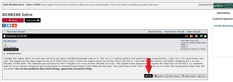 YES - this is the correct place for your Intro and I've added vehicle details to your forum signature which will appear with your next post. You can EDIT any of your posts using the EDIT button: