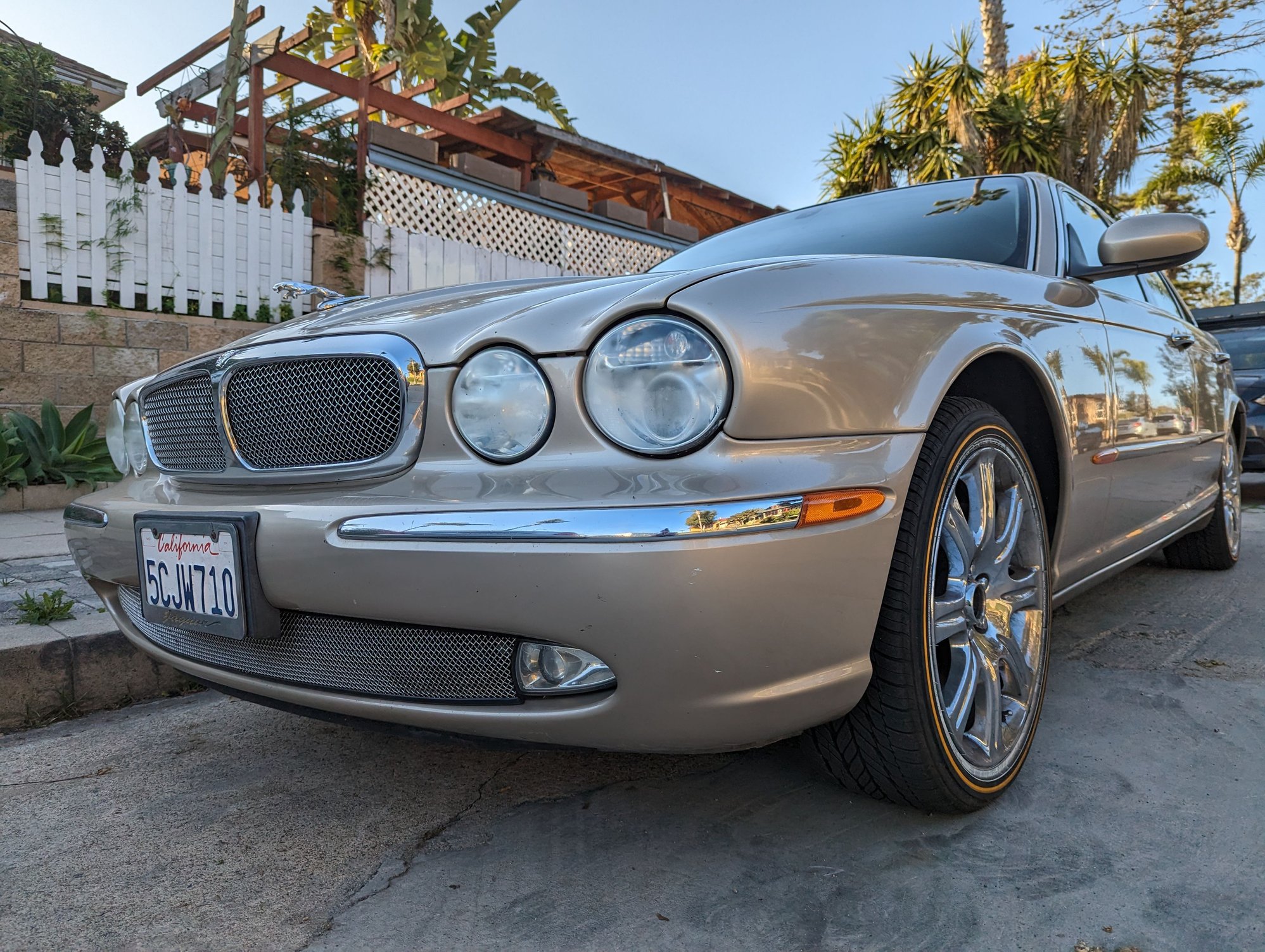 2004 XJ8 with stock chrome rims and vogue tires.
