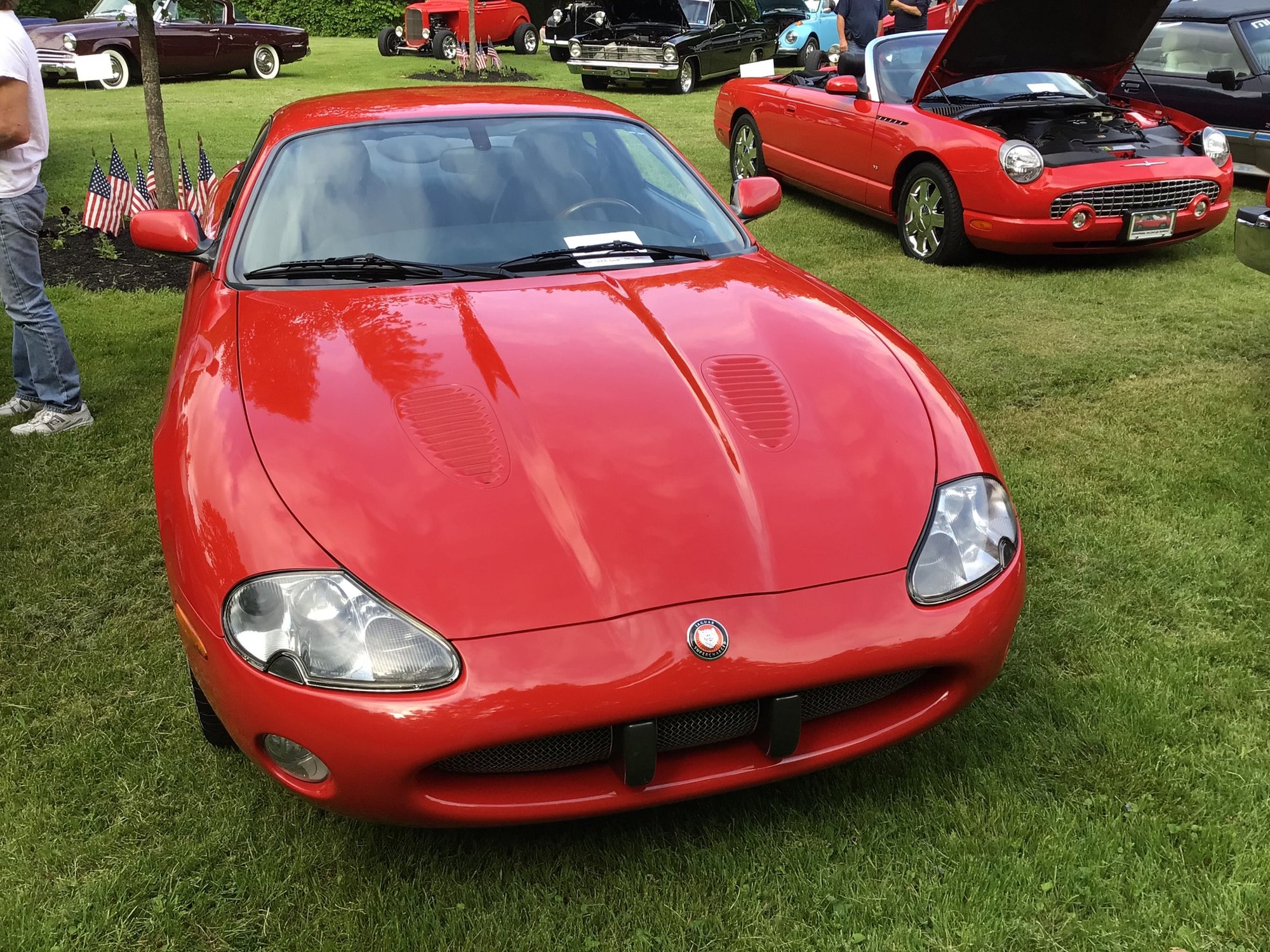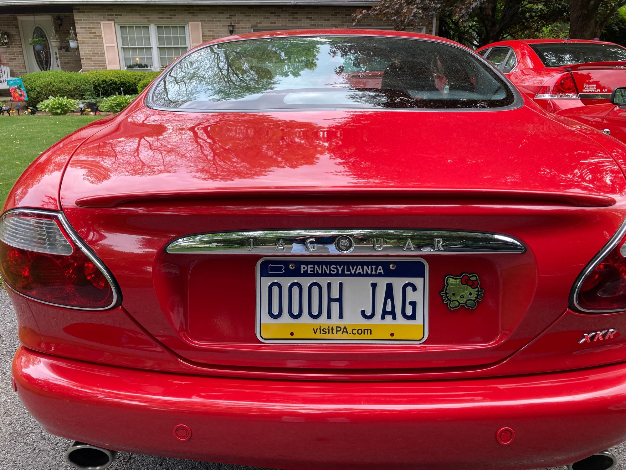 Hello, my name is Charlie, new member. Three years ago I bought a beautiful Phoenix red 2001 XKR coupe on Bring A Trailer for a reasonable $10,250. It had 124,000 miles, but a very comprehensive maintenance record with the exception of the timing guides not done. I factored the replacement into my bid, and for three years the car was perfect. Then last month I heard the timing chain rattle and knew my luck had run out. I live in State College, PA (home of Penn State) and the shop who works on my Mercedes 500SL & CLK 430 coupe said it was over his ability to fix. Trailered it 100 miles south Take it to local cruise in. Cheesy license plate, but the good ones were taken.
