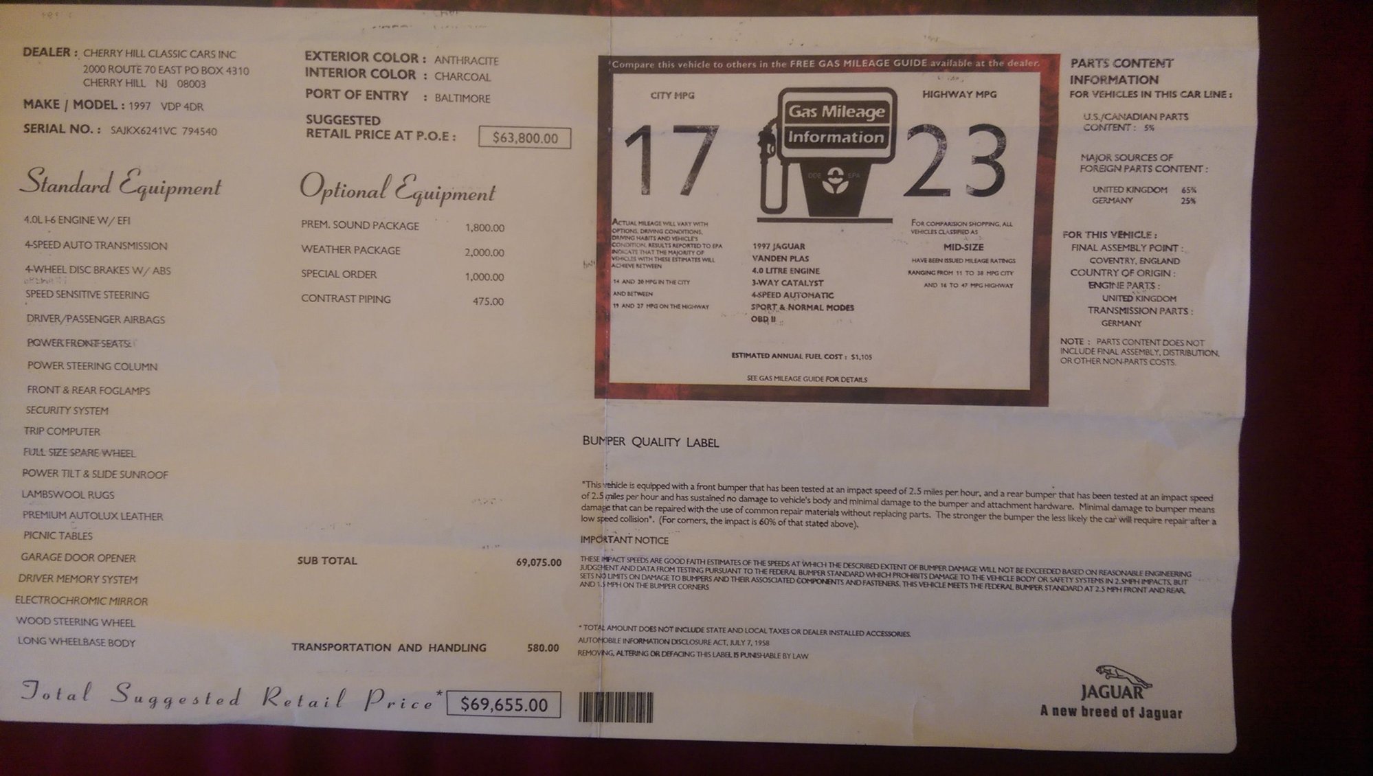FS[MidAtlantic]: 1997 XJ6 VDP - Very RARE Black on Black