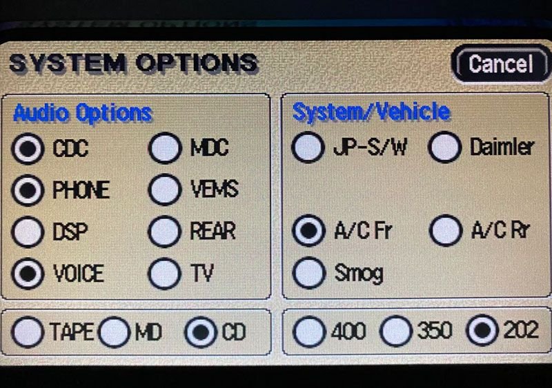I went into the setup menu and all Audio Options were unselected. I selected the following (didn't touch System/Vehicle or the bottom options):