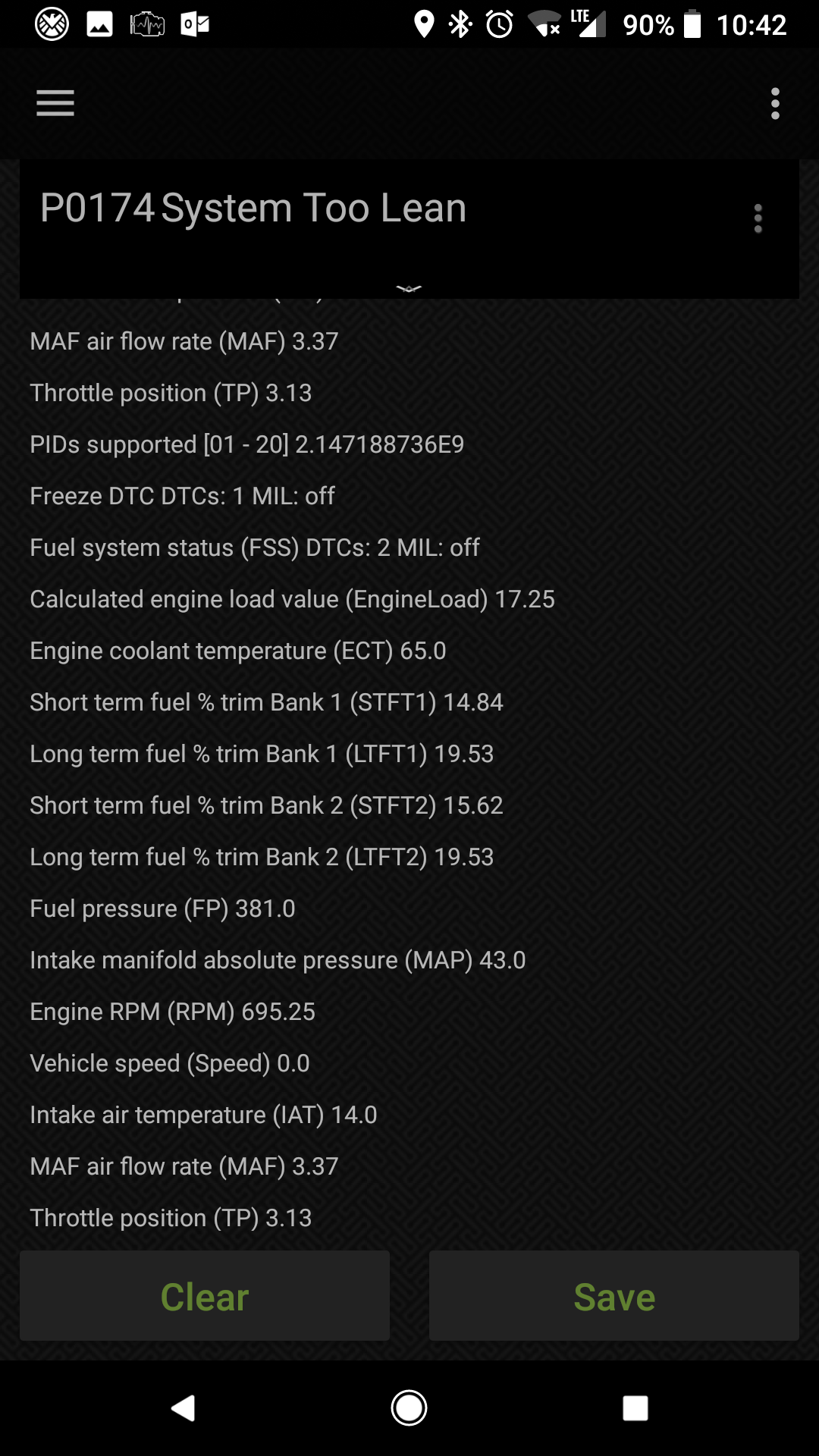 Here's the code info after driving it around for about 20 minutes (I thought that was best - if you need cold readings let me know) P0174 codes 1/2 P0174 codes 2/2