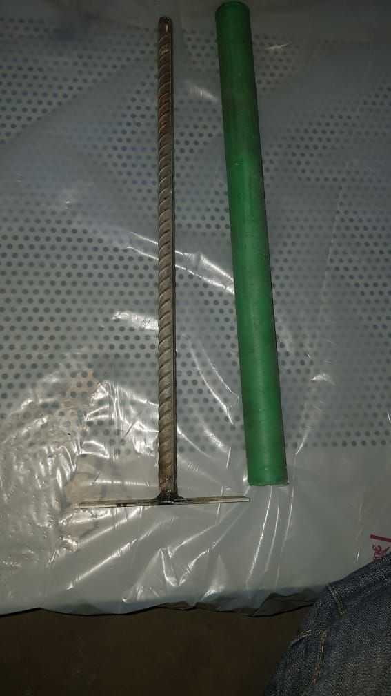 the length of the pipe should be enough to raise above the battery, the metal bat is the same length, so when the plug is in the PVC pipe, the metal bar is out by about 8 mm, to insert it back, push on the metal handle while holding the pvc pipe in place.