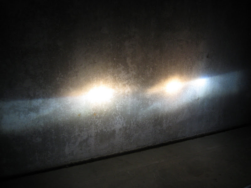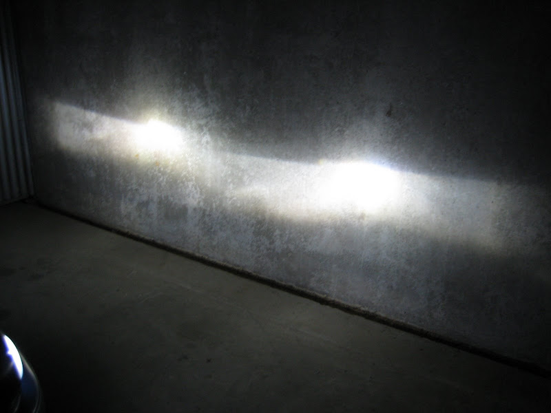 i have had someone drive my car past me so i could see my HID fogs and mains.... it is bright as shzit... i aimed my bulbs down just a little so people don't get too pissed... looks good IMO.