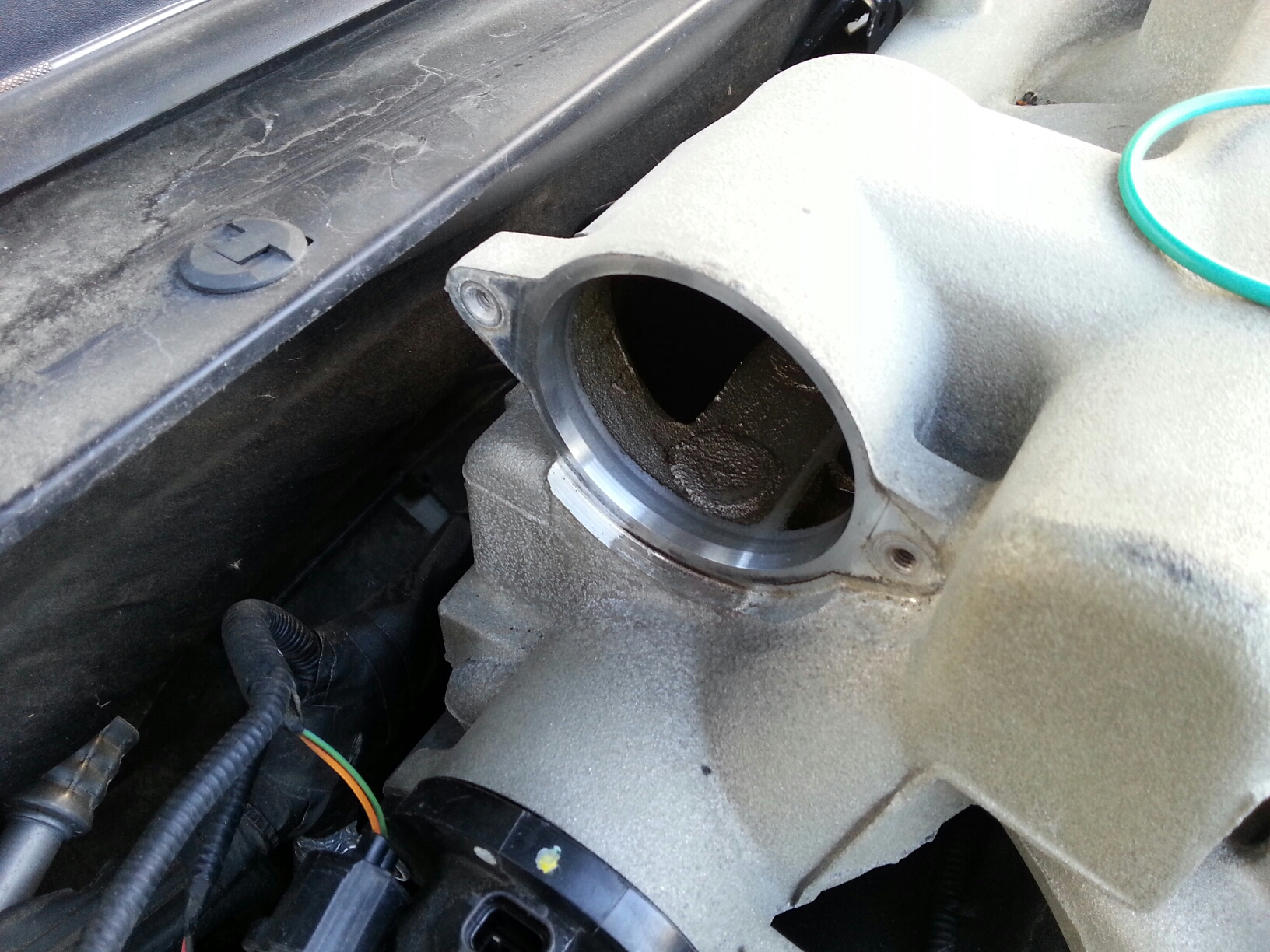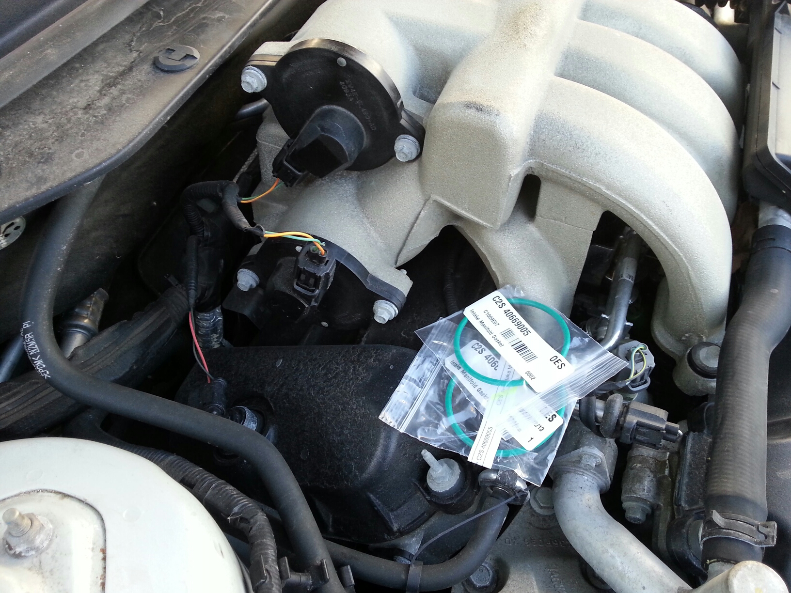 To prevent the IMT / IAC valve leak on later engines, Jaguar used an oversized, green o-ring that better fills the gap between the intake manifold and IMT/IAC valves.