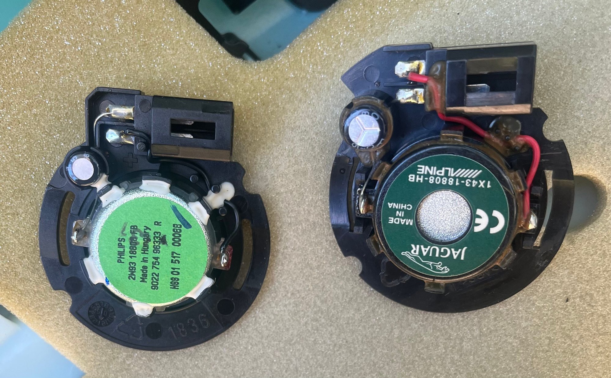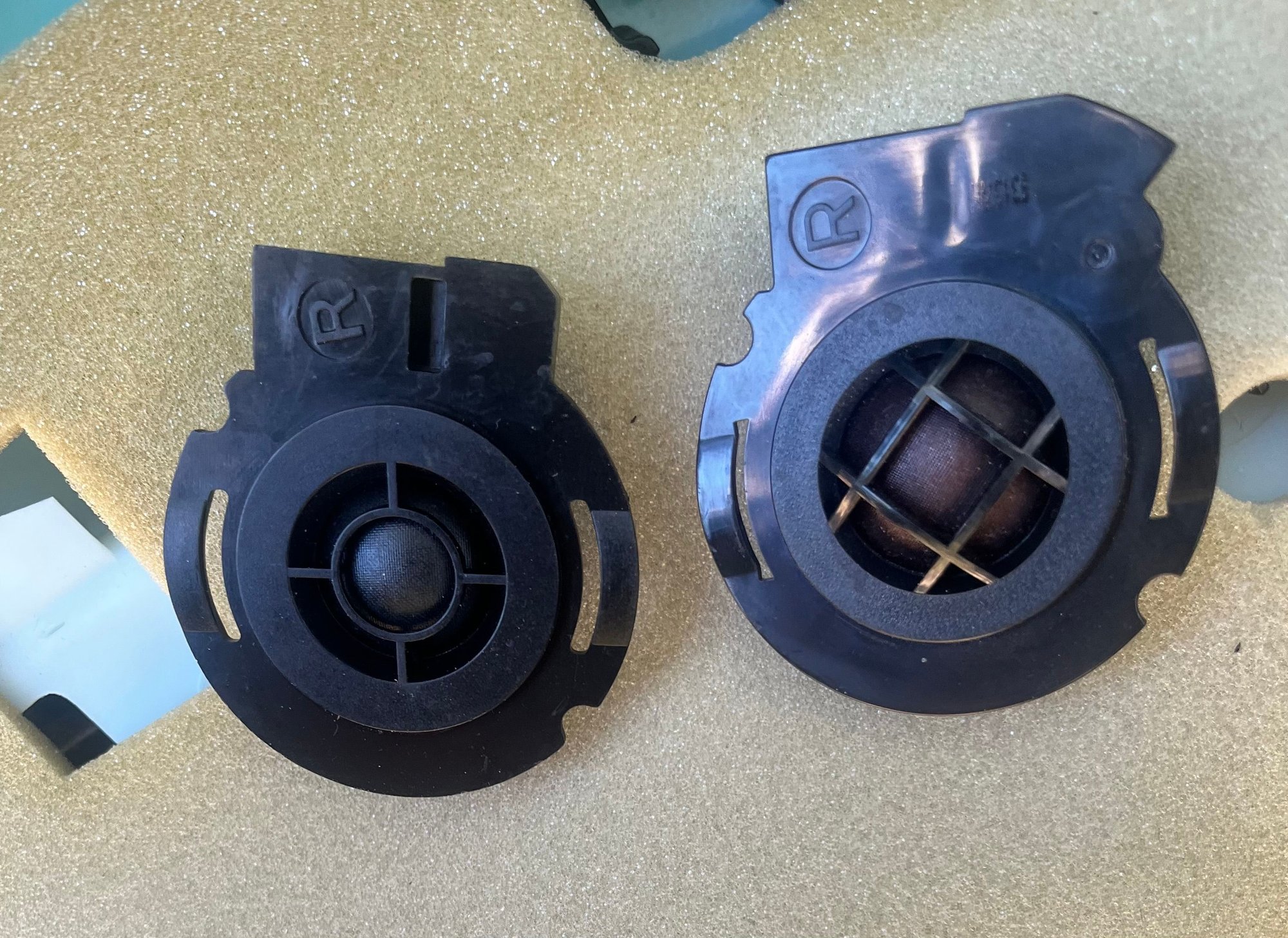tweeters on left are the base tweeter, tweeters on the right are the alpine tweeters.