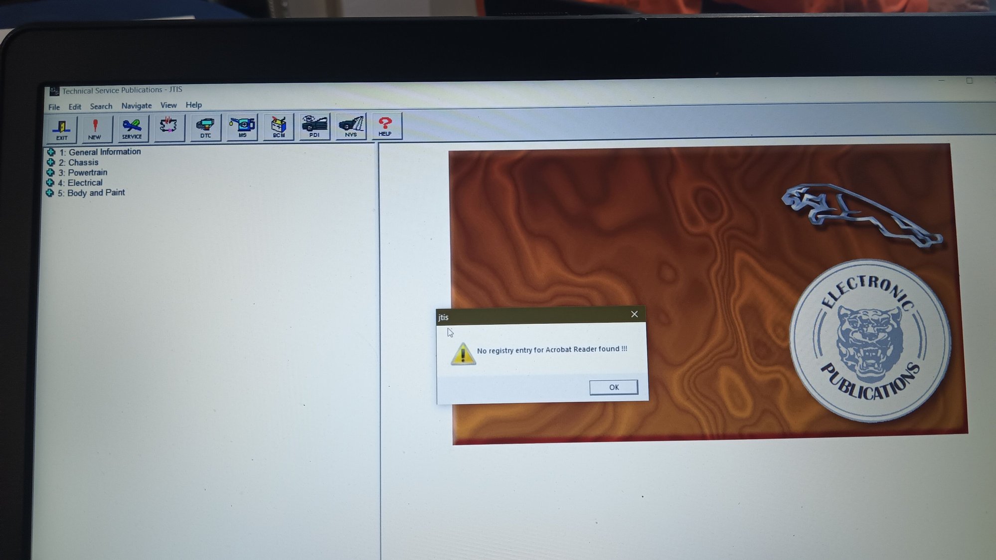 I finally got the JTIS system working on a windows 10 laptop. Super stoked about it! However I am not able to use anything that uses Adobe Acrobat Reader. I am getting the error