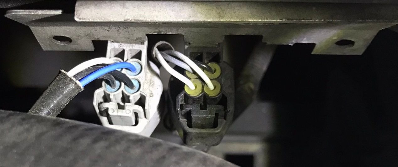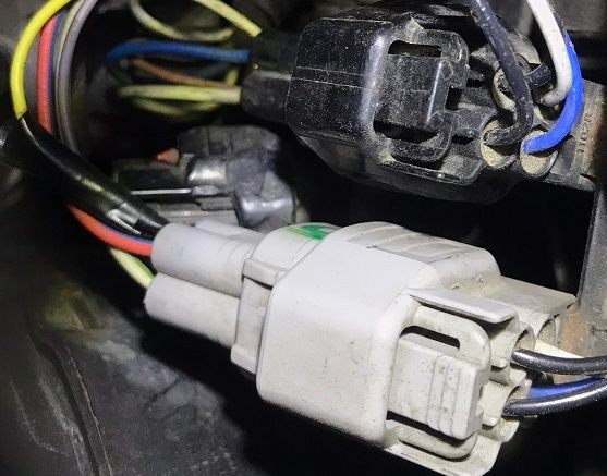 The downstream is again with a black connector, but the wires are like at the upstream - two black wires for the heater, white and blue wire for the signal..