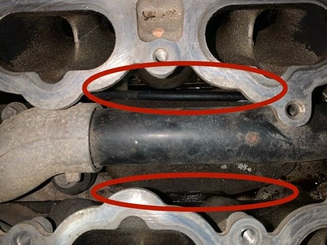 Hello JaguarForums I thought I would bring this question here to see if the experts can give me some insight. Underneath the inlet manifold lower plastic piece; there is a coolant pipe that bolts to the top of the engine. If you take that pipe off, underneath that pipe is the gasket that is giving me a vacuum leak.