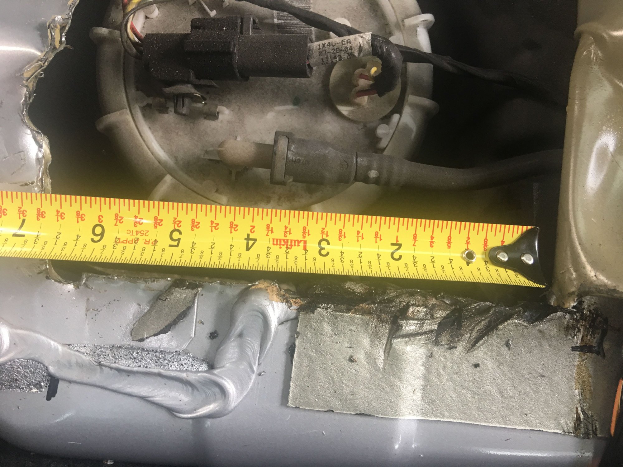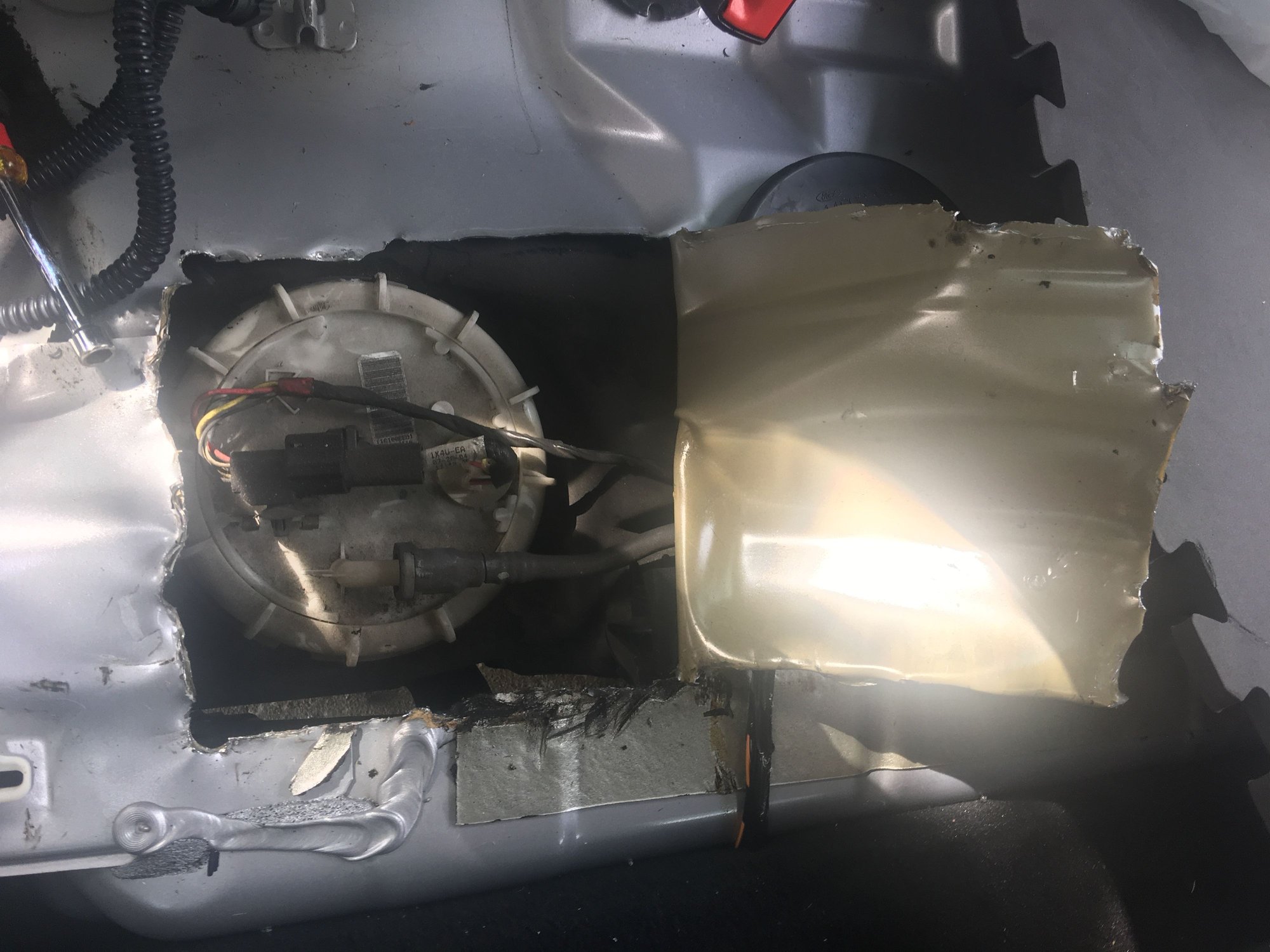 I decided to do the cut the hole in the floor board of the rear seat to access the top of the pump to remove. No way to remove the fuel tank out the bottom to do this the correct way.