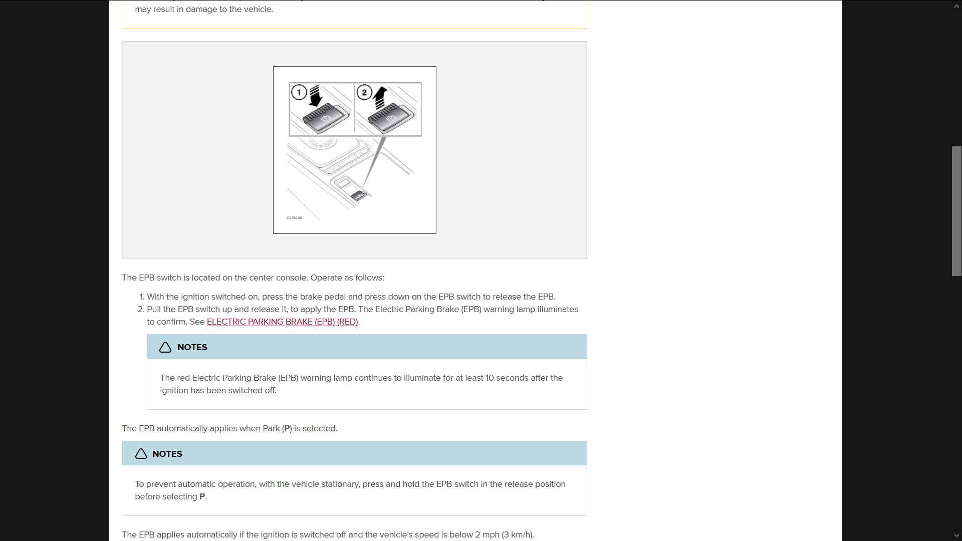Okay, so it automatically comes on when you put the vehicle in park? Should it automatically shut off when I start the car and select Drive? Or do I always have to press the brake and push the EPB switch?
