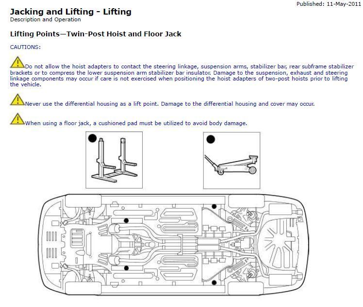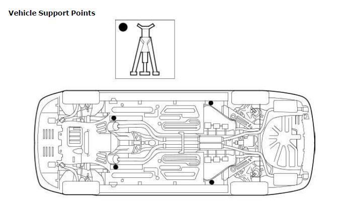 Here are the support points after you get it jacked up as you never work under anything unless it is supported and NOT on a jack!
