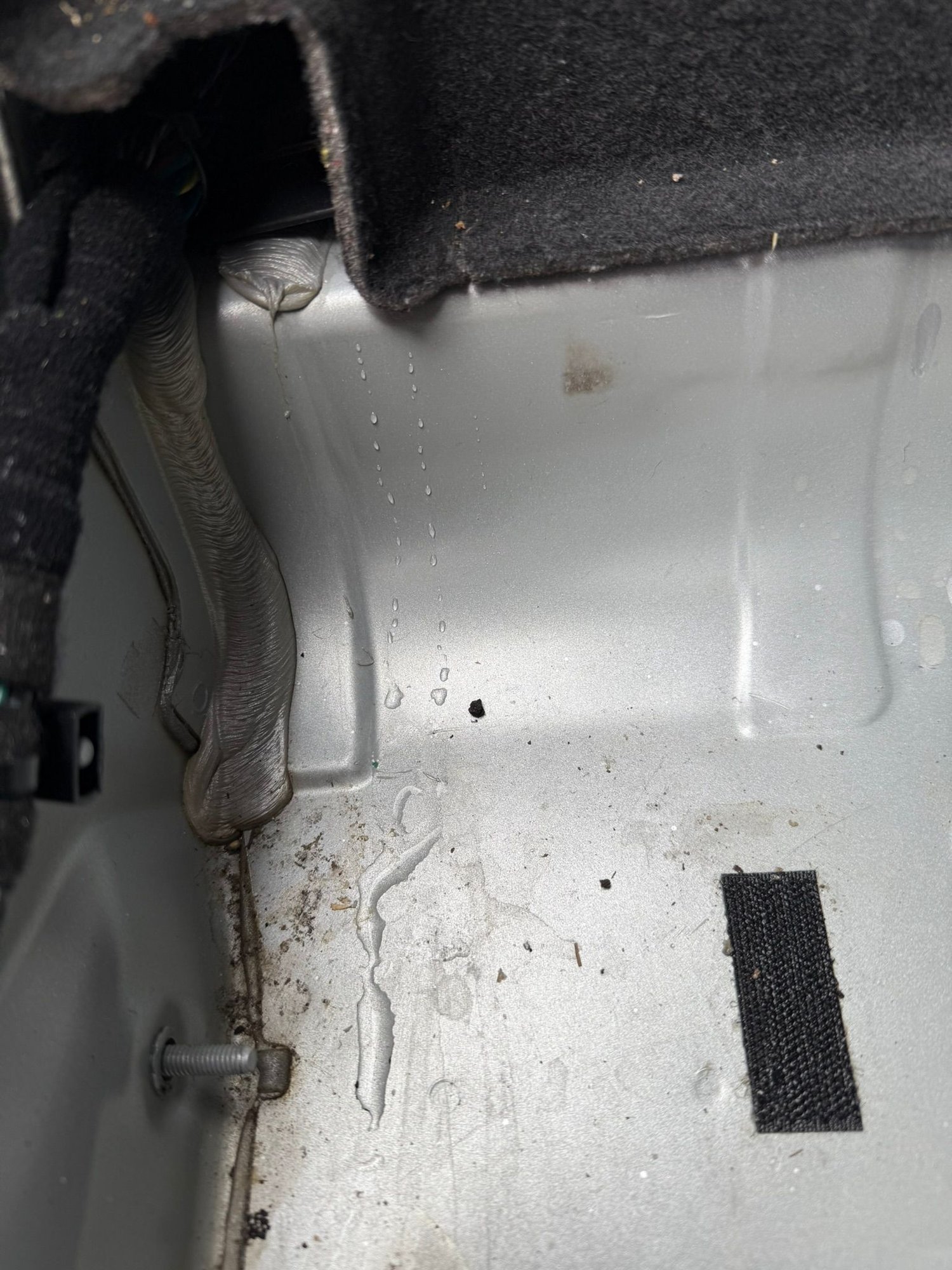 Well, I hosed the car off this morning and low and behold, a trickle of water on the drivers side coming from the rear light area, clear as day(see photos). Time to pull the light and get it fixed. Thanks for all the support.