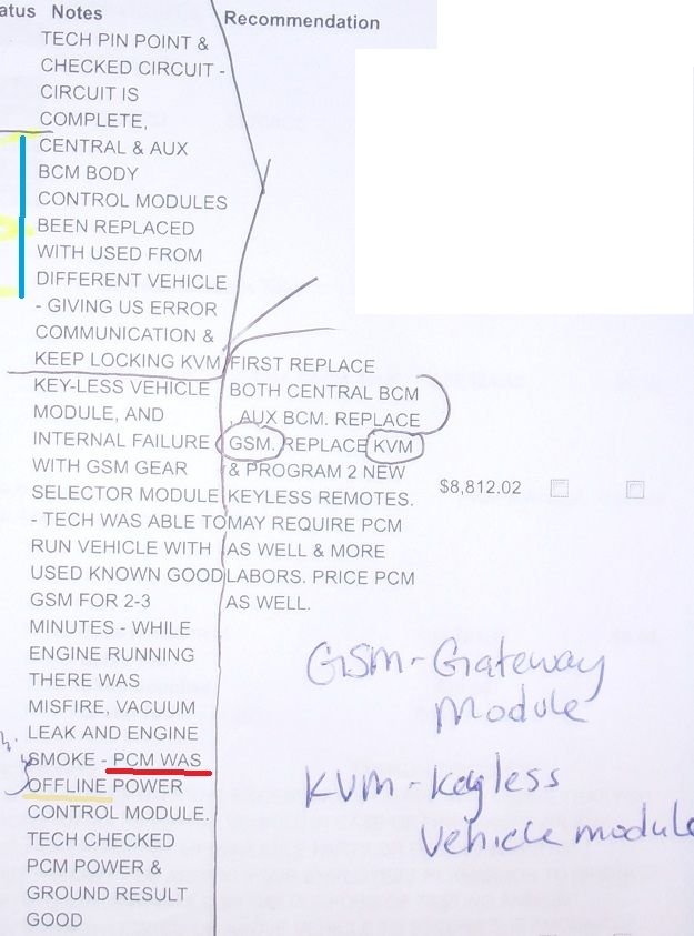 I am attaching a paper from the mechanic. Vertical line separates 2 columns.