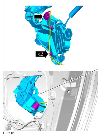 Once out, there is a plastic cage/bracket that is connected to the latch. There is a rivet that you'll need to drill out and replace.