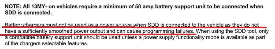 Once you have JLR SDD and the Mongoose Drivers installed, make sure the car is hooked up to the battery power supply and have your laptop on a charger or the charger nearby (just in case).