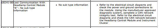 (Lost Communication With Headlamp Control Module "A" - No sub type information)