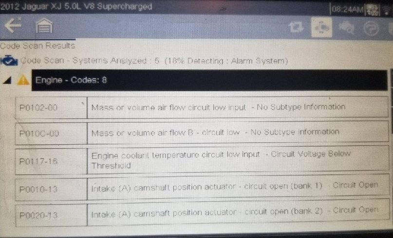 I have a 2012 XJL Supercharged that ended up requiring a new engine. Yes, it was the dreaded tensioner failure that did it in. The guide on the passenger side split into three pieces and dropped down behind the front cover. Moving on. New engine (0 miles) installed and now we are chasing code gremlins. The car runs and drives beautifully, but once parked and shut down, it will throw the following codes on the next restart: P0102-00, P010C-00, P0117-16, P0010-13 and P0020-13. I am aware of what each code means, but unsure why they are showing up.
