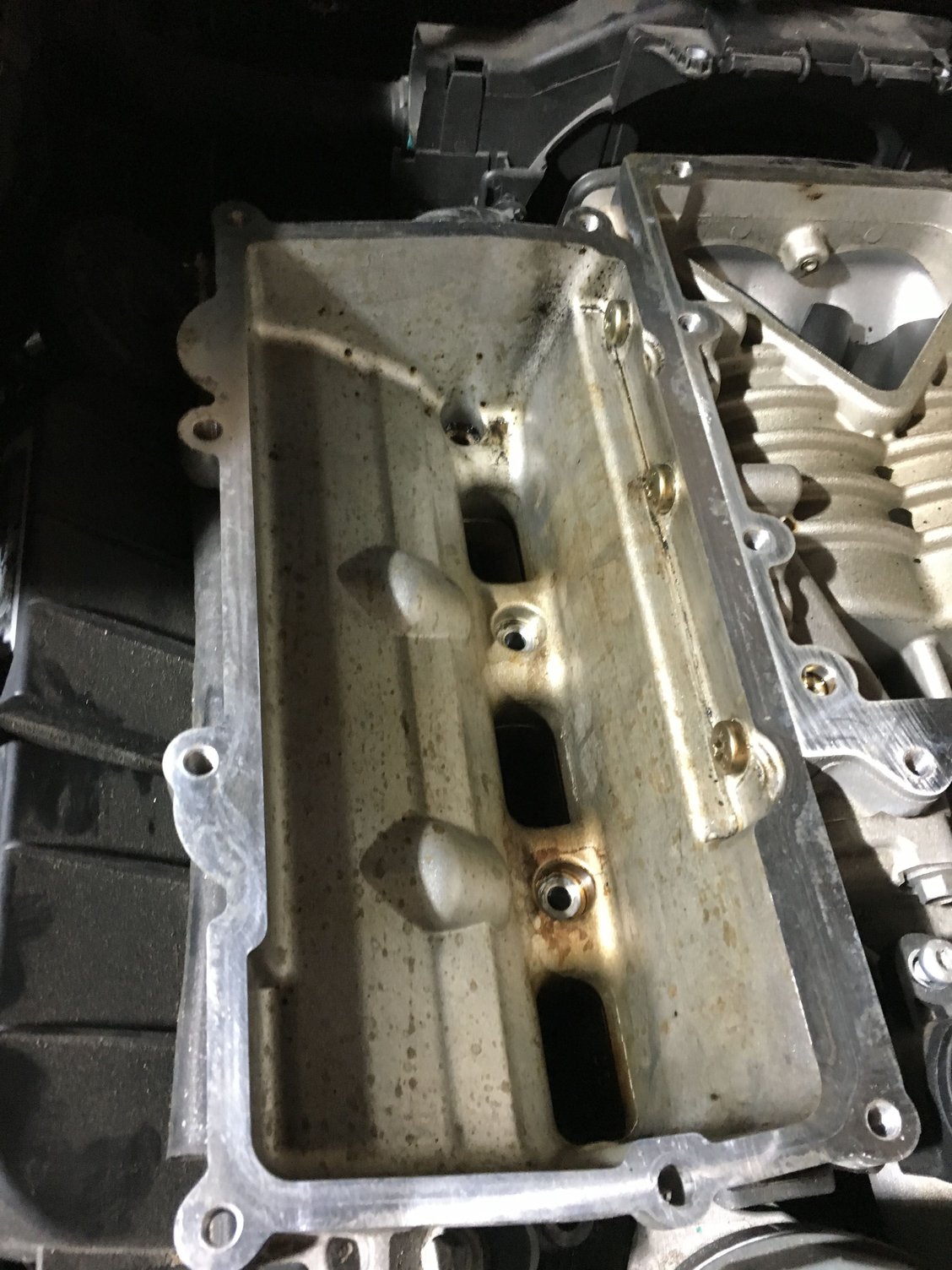 With the supercharger of you can clean the back of the inlet valves and cylinder head intake ports of the deposits that accumulate on direct injected engines. You just turn over the engine to position the valves closed on the ports you want to clean. It’s time consuming but the engine will run way better. This pic is of an overheated engine with blown head gaskets but you get the idea of cleaning