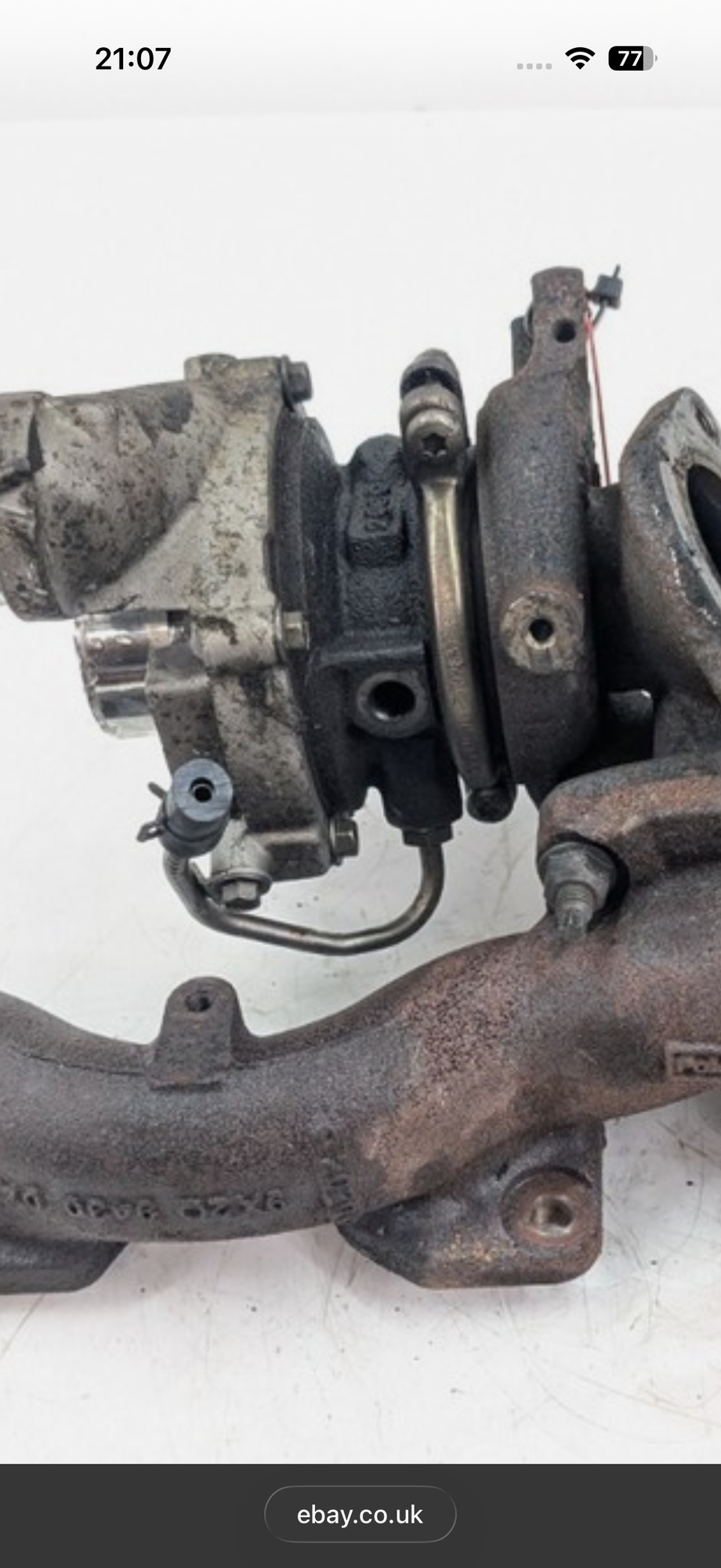 more than that…. Every picture… for every turbo or turbo core …. Has 3 holes. One oil intake from the back…. One drain down…. And this that leads to the front of the engine. And this…. Because the pressure is increasing with the rpm and the boost…. As the oil pressure in the turbo…. It gues it can get to about 2 bar…. That’s why it’s metal. And screw ed into the turbo core.