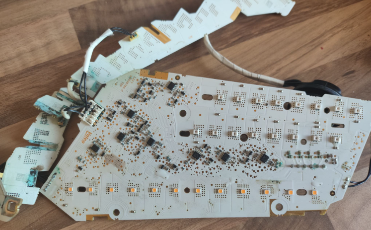 I took the lamp unit apart (used a dremel to cut out the lens from the black plastic case) to see what damage was done and to see if I could fix it (just for fun). After some cleaning and resoldering, all of the LEDs worked apart from one and I managed to get most of the circuits working but not all and I think this is because some of the metal contacts on the circuit board have gone, lots of the solder joints are just dust etc, some pictures below (there is lots of green in the lower part of the lamp from sitting in the water) in case you are interested…