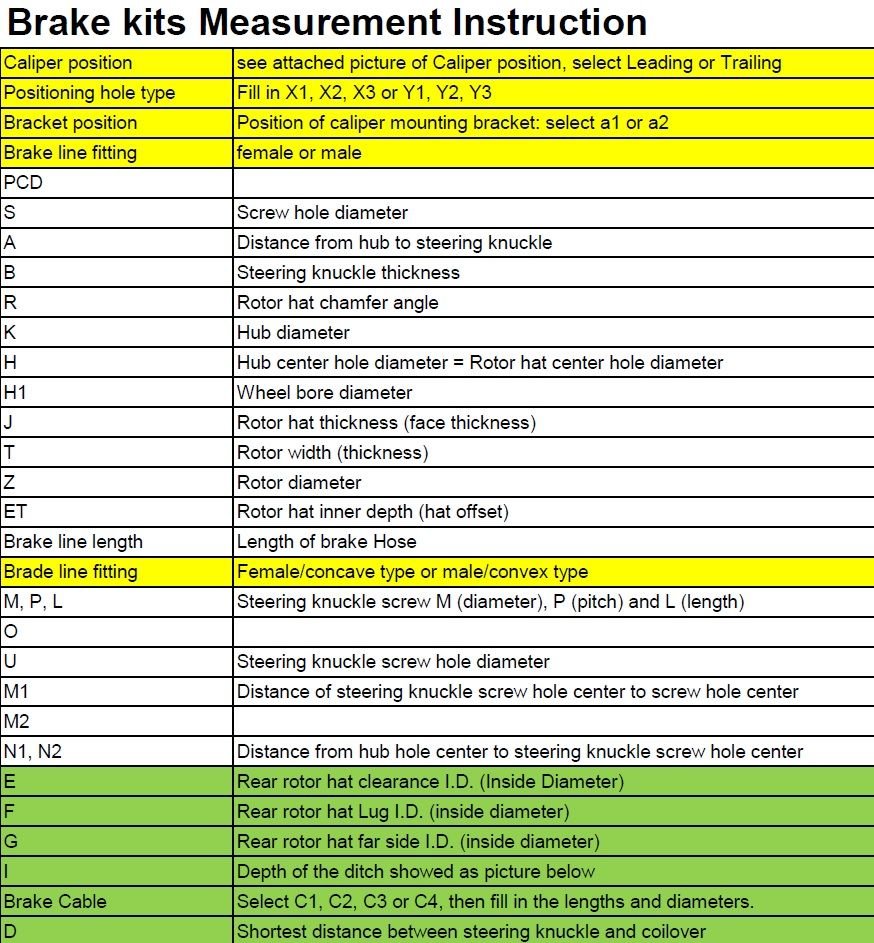All that aside the most important help I need is really to find accurate measurements illustrated in the table regarding the wheel bore diameter, hub diameter, steering knuckle thickness etc so I can get the new calipers made to be the best fitment possible.