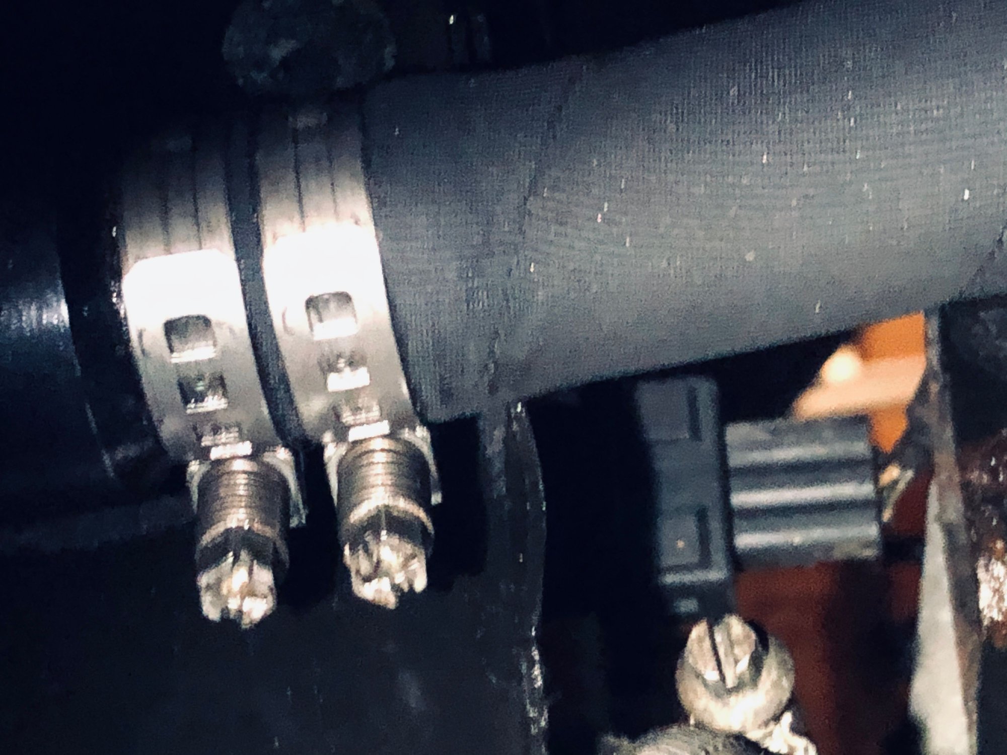 The cost of genuine Jag replacement parts was exorbitant so I took the U/S hoses to a local hydraulics workshop and sourced some replacement hi temp/pressure hose and then stopped at an irrigation supply shop and bought some double width bolt up hose clamps.