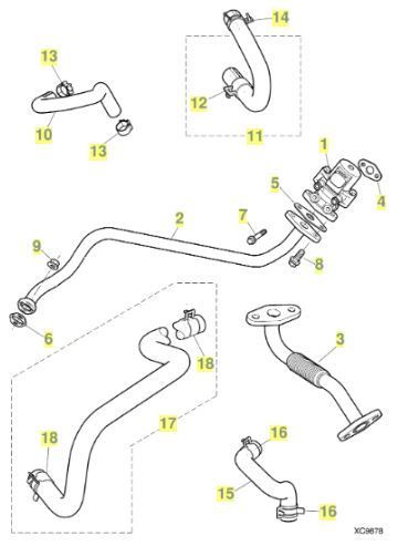 The Crankcase Vent Valve (CVV) is often mistaken for an EGR valve. It is the black plastic disc-shaped device at the front end of the right bank camshaft cover, Part 2 in this diagram: