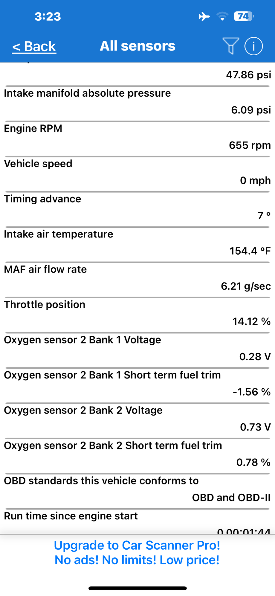 Could you scroll up and take a look to my MAF and fuel pressure values ?