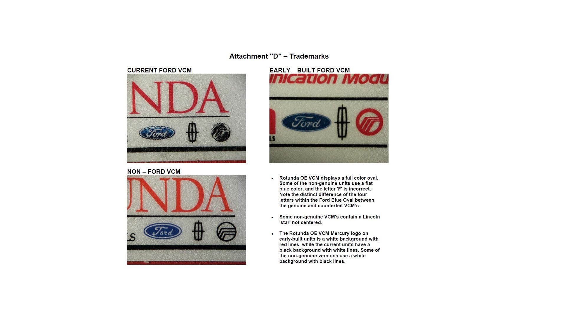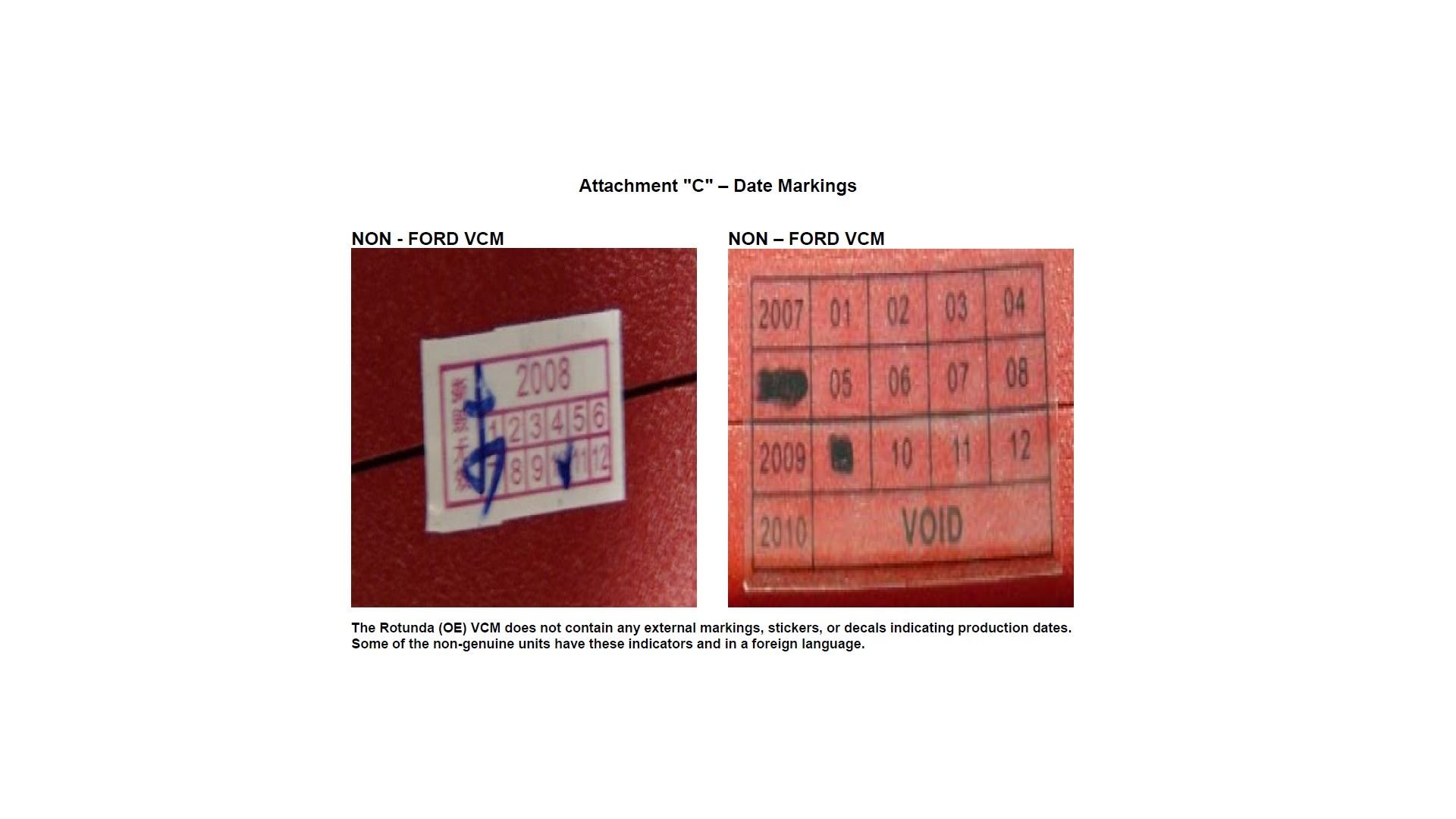 Here are some images that I received to help verify if the VCM is genuine of a clone...