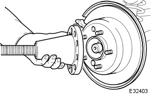 Do not use a hammer to detach the halfshaft from the hub assembly, failure to follow this instruction may result in damage to the halfshaft.