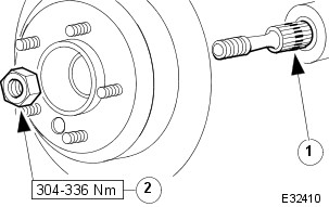 It is very important to not reuse the original axle nuts. They are designed with a helical insert that deforms when the nut is subjected to the final torque of more than 200 lb. ft. The helical insert cannot be relied upon to lock the nut on a second installation. At least two members of the Jag-Lovers forum who reused the axle nuts reported a nut coming off while they were driving their Jags (!), and a few others have reported discovering a nut had loosened (!).
