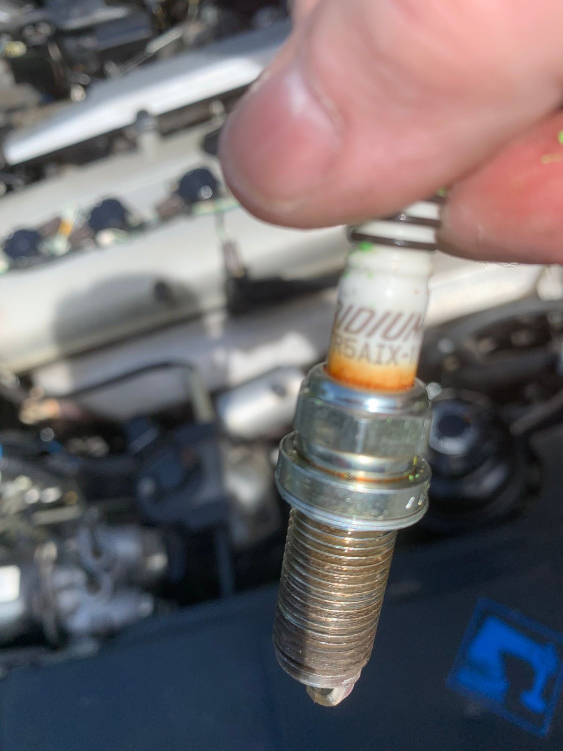 I just pulled the plugs to have a look. They have less than 10k miles on them. They have this orange ring on all of them.