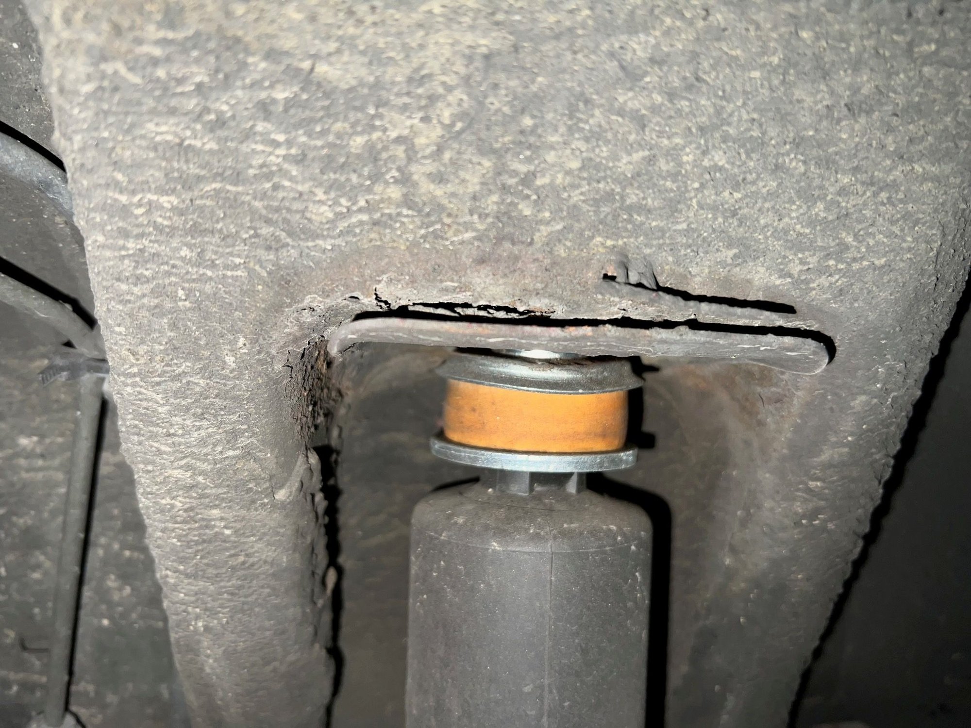 In fact, I hate to say, but the top mount looks like it has rusted away a bit and the whole shock can move up and down…