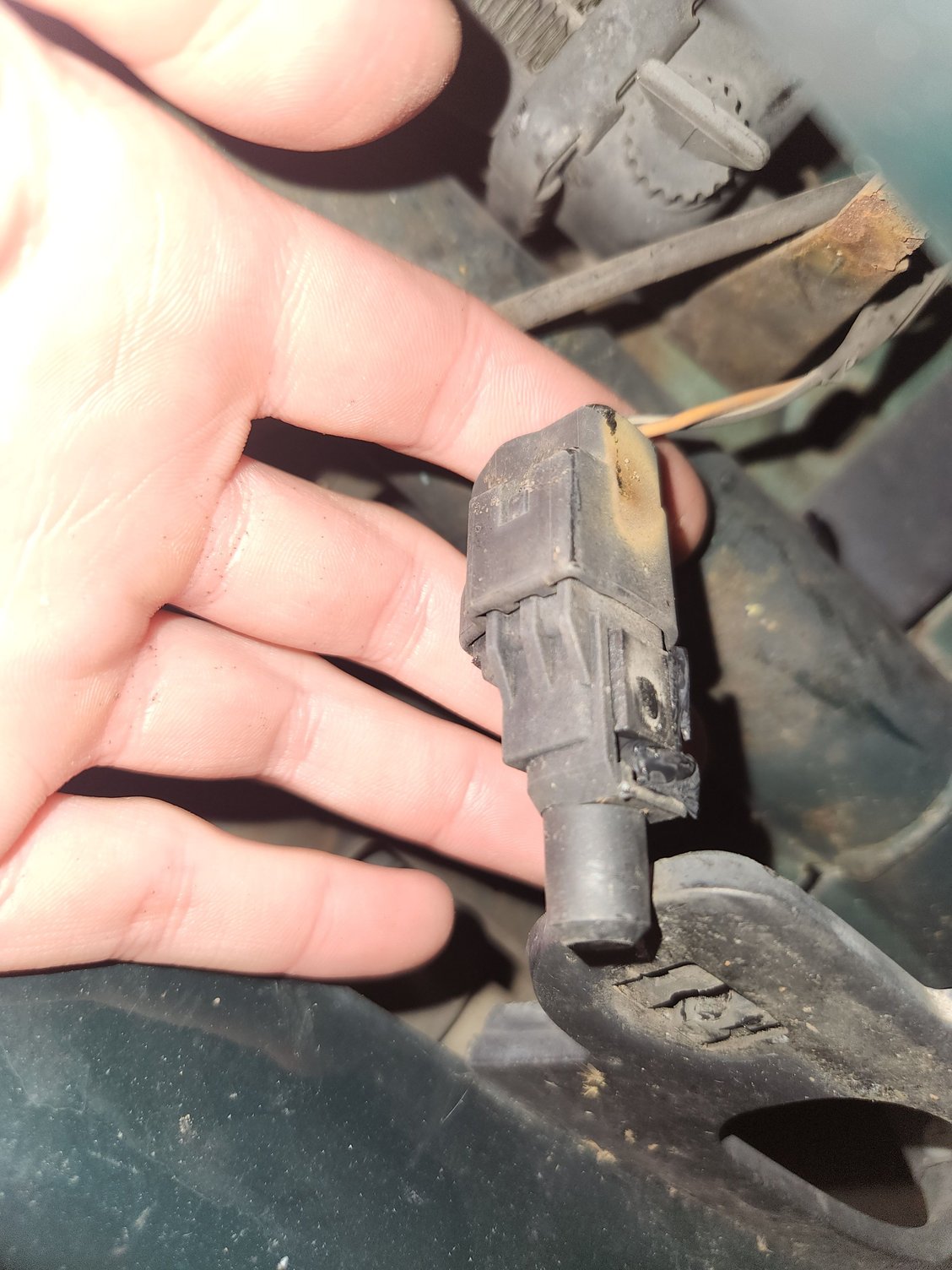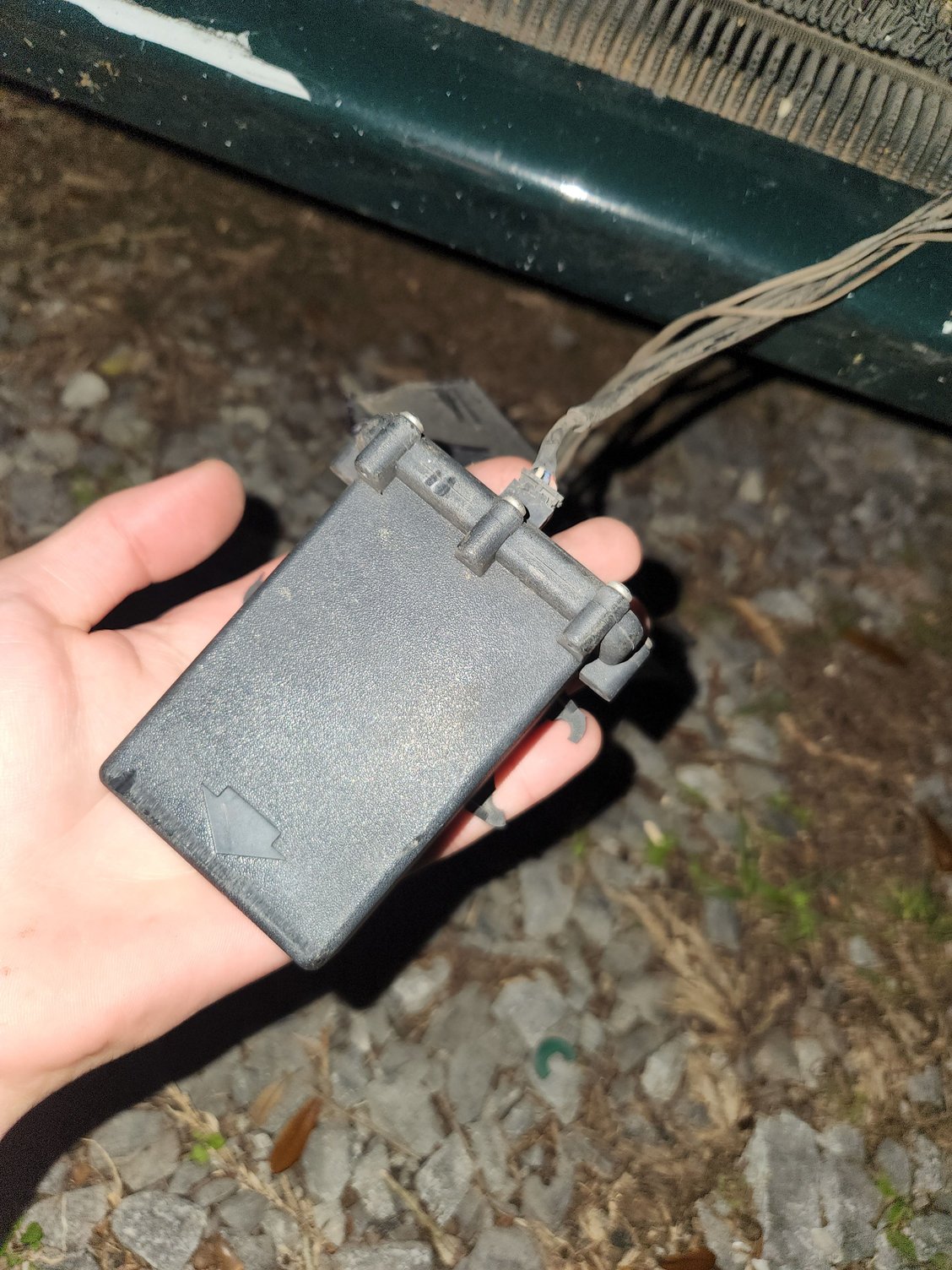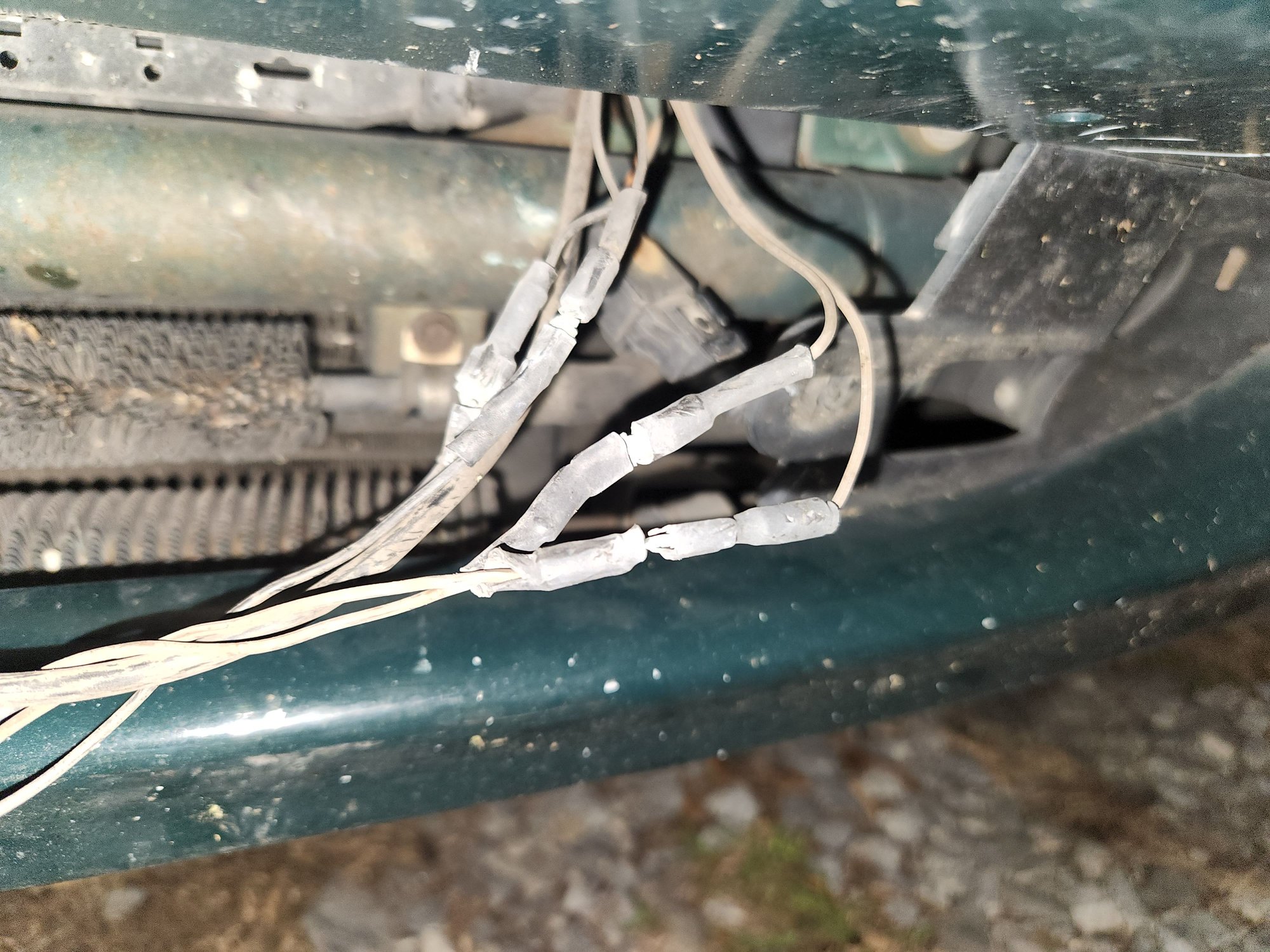 Took off the broken Splitter Vane to get a closer look. Found some spliced wires that connect to three different components. Dont know what this is, assuming its the front Bumper Radar Detector Presumably the front Bumper Radar Detector Assuming this is the Exterior Temperature Sensor.