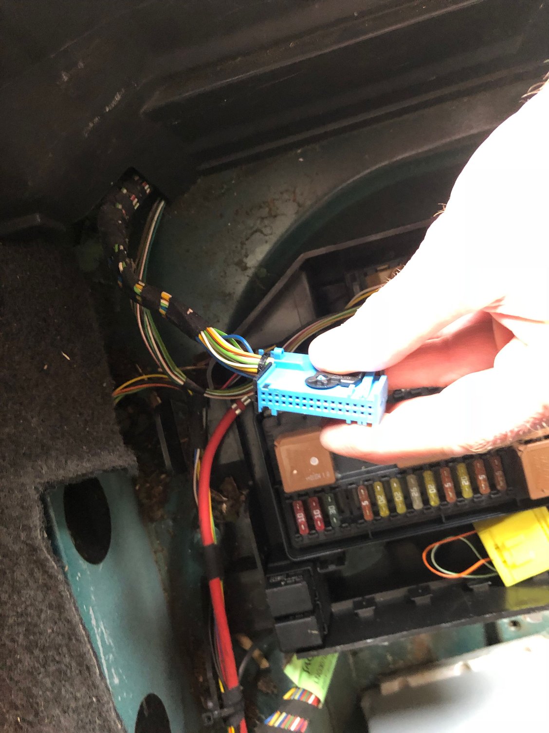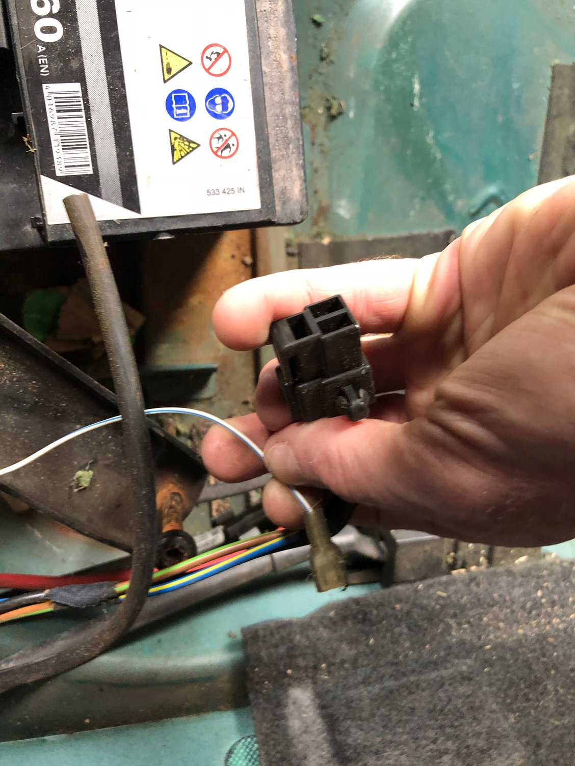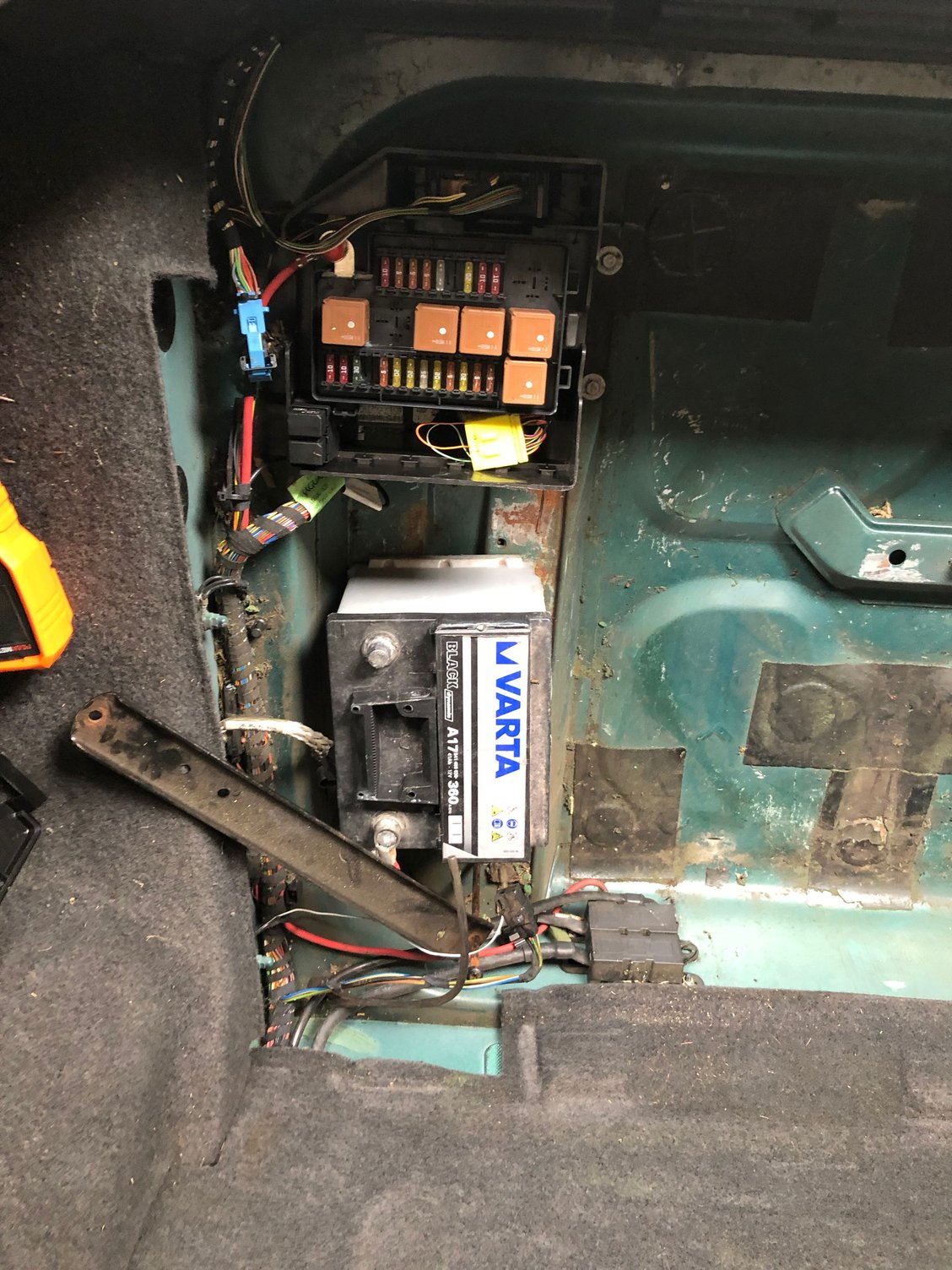 Unused connector at rear boot fuse box One spade and one multi connector unused in front of battery in boot Boot shot and tiny 45amp battery