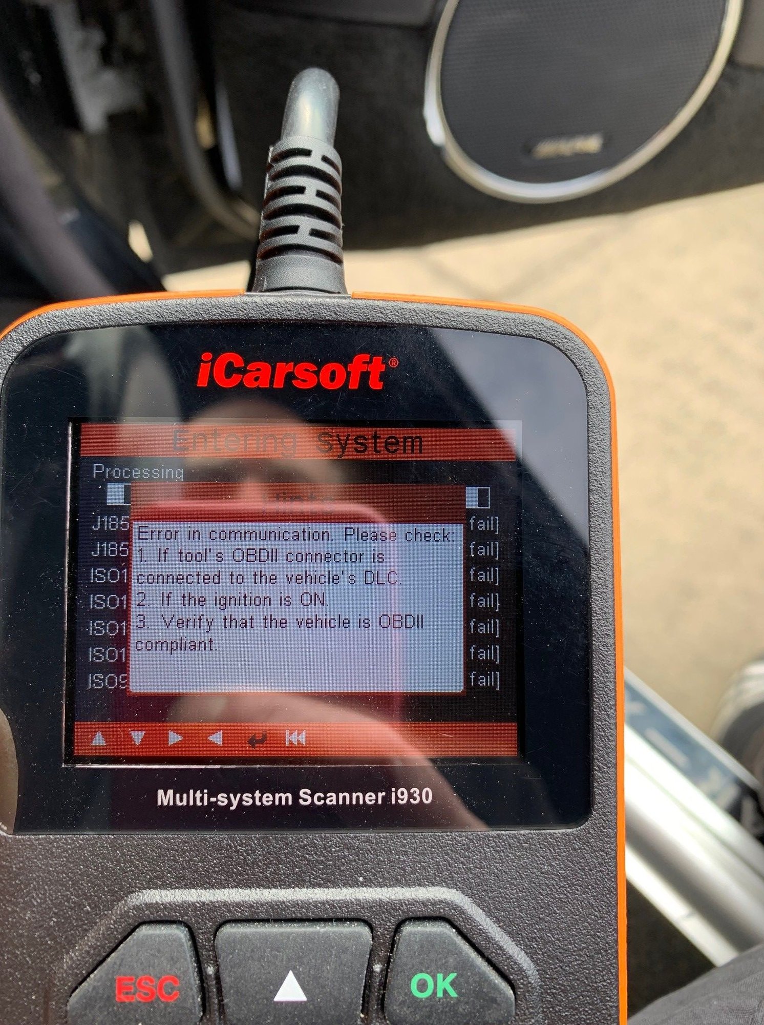 However, when I try OBDII diagnose, it comes up with communication error. It's connected, the engine is running, and the car is OBDII compliant.