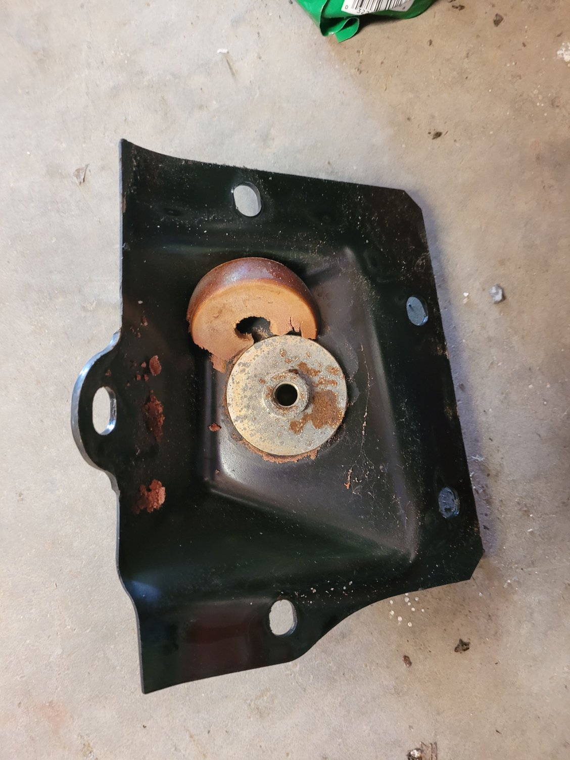 Pic of the bad one as it came out. Underneath on the shock tower was a huge pile of orange powder from the disintegrated bushing...vaccuumed everything up and all is well.