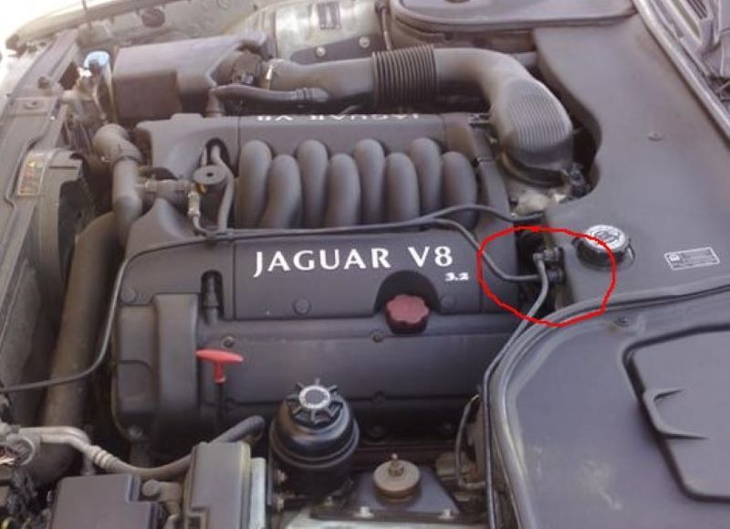 back to the top of the expansion bottle, or out the front of the water pump. It will need