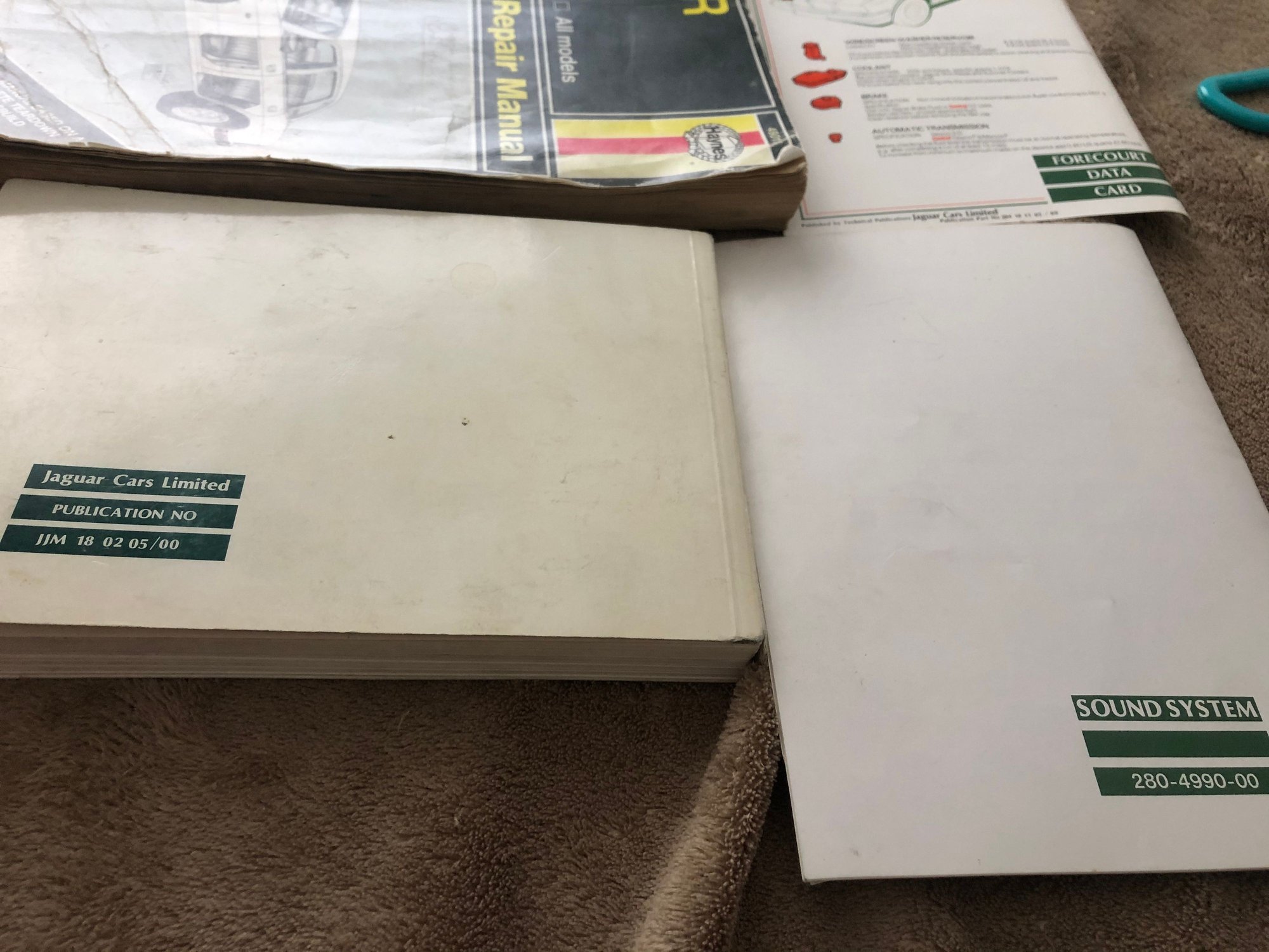 Repeating the back story, (if it’s of any interest), I have a 74 E type and 95 XJS that were my grandfathers from new, and I lost all the literature, records , window stickers, etc, for these two cars during a move. I have now been successful in obtaining replacement literature, but unfortunately all the original leather/vinyl portfolio wallets available for my cars , are in a terribly deplorable state, so I am not going 100 percent original on that, and instead am using the most aesthetically pleasing and durable portfolio/wallets for Jaguars, which are the green marbled ones that came in the XJ40’s, with a big embossed growler. These are surprising cheap on eBay and have been delivered twice now with XJ40 books that I do not need.