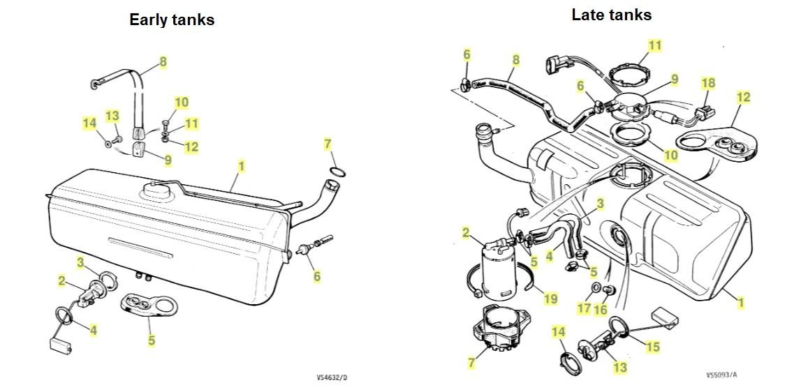 Ill just throw out from my own experiences. Those tanks are a PITA to remove and then again to install. If you try it, dont forget to unhook the lines from the bottom or you will never succeed..... and dont lose those little clips on them- they dont need to come off, just to be turned 90 degrees. The screws holding the filler neck gaiter frame are 7mm. Sorry, Its all so emotional for me. There are threads on tank removal which I recommend you have a look at. Ive never tried an early tank but it appears to be very much the same procedure (I plan to have the opportunity not too far in the future). If you use a later tank, I suggest that you retain the external pump because of the difficulty of the tank removal. Otherwise, I dont think it would be difficult to build an extension harness from the old plug to the new location. There will be differences in the plumbing around the tank but its nothing insurmountable. By the way, what is the last 6 of your vin? I had thought the external pump was 88-89 only.